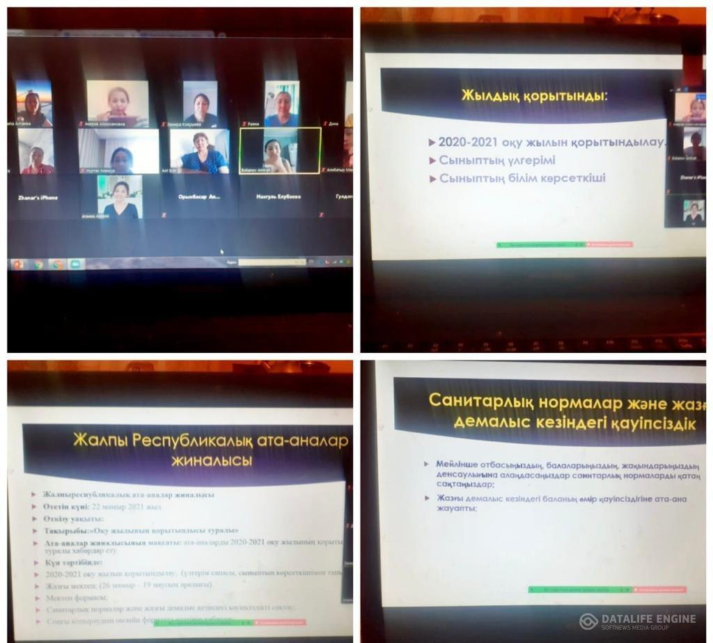 №88 мектеп бойынша 2020-2021 оқу жылының аяқталуына байланысты жалпы республикалық ата-аналар жиналысы болып өтті. Ата-аналар жиналысына мектеп әкімшілігі, сынып жетекшілер қатысып, онлайн ашық сұхбат жүргізді. Жиналыстың мақсатына байланысты ата-аналарға оқу жылының қорытындысы туралы хабардар етілді, оқушылардың сабақ үлгерімі туралы педагогтермен жеке сөйлесу болды және оқушының оқу-тәрбиедегі жетістігі туралы және жазғы демалыс кезіндегі өмір қауіпсіздігі туралы айтылды.