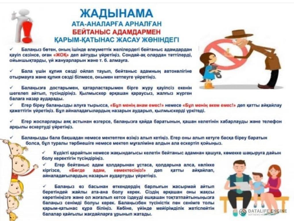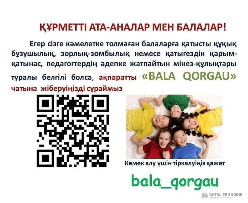 15 март 2022 0 1 2 3 4 5 "Bala Qorgau" Құрметті ата-аналар және оқушылар!Егер сізге кәмелетке толмағандар құқығыңызды бұзатын күш көрсету ,дөрекілік қарым-қатынасын көрсетсе және педагтар тарапынан этикаға жат мінез-құлық байқалса, "Bala Qorgau" чатына ақпарат жіберуіңізді сұраймыз.
