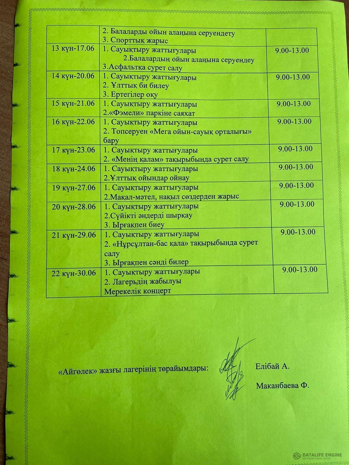 » "Айгөлек" мектеп жанындағы жазғы лагері