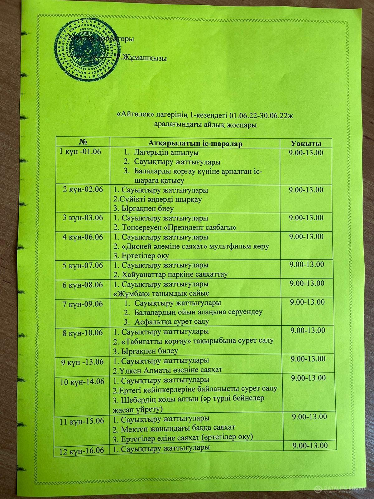 "Айгөлек" мектеп жанындағы жазғы лагері