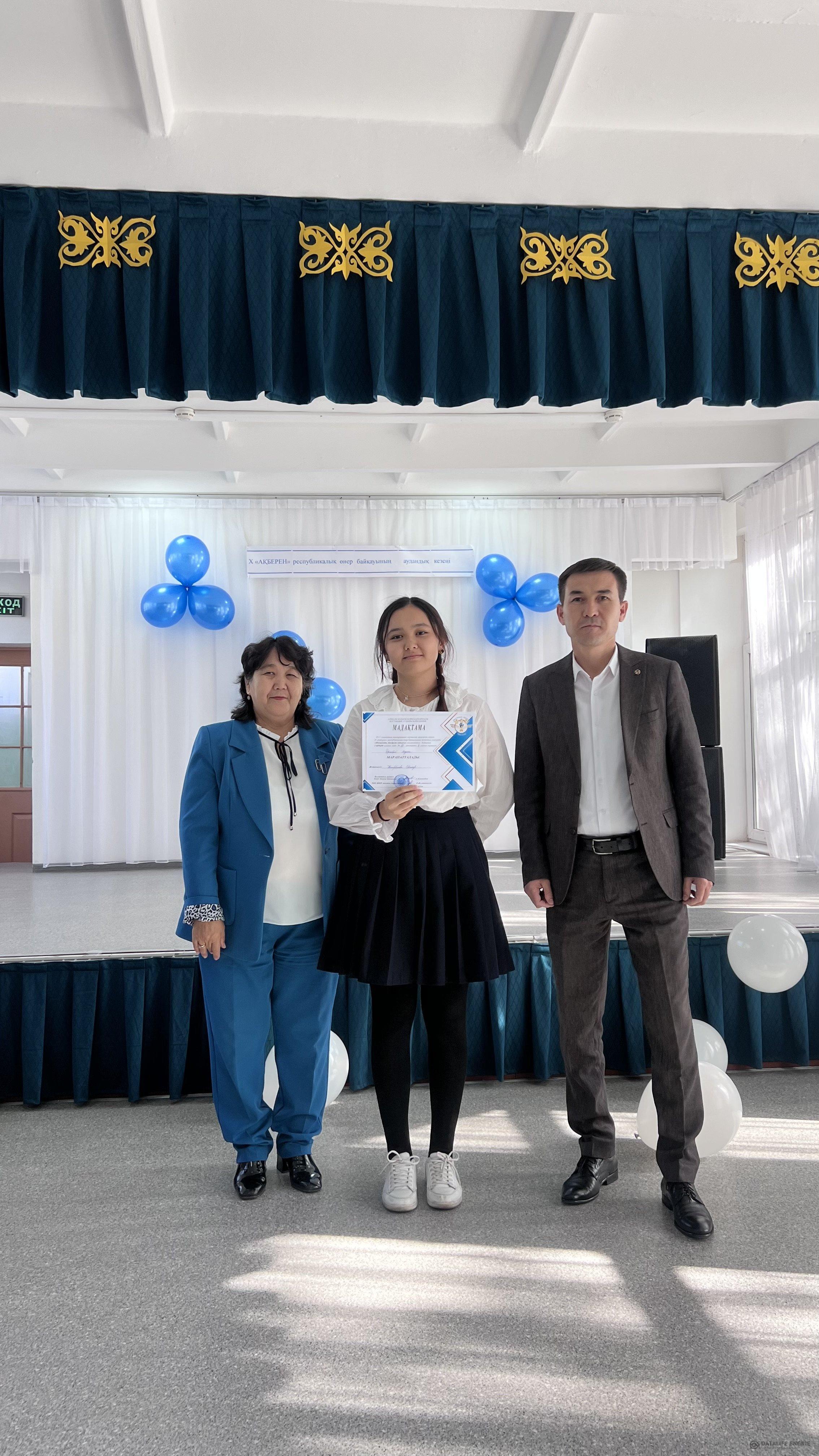2023 жылдың 17-қазанында мектебімізде X «Ақберен» республикалық өнер байқауының аудандық кезеңі өтті. Байқауға аудан мектептері бойынша 42 өтінім түсіп, оқушылар 6 номинация бойынша тартысқа түсті. Байқау нәтижесі бойынша 1-орын алған 6 оқушы қалалық кезеңге өтті. Соның ішінде мектебіміздің мақтанышы 9 сынып оқушысы Дүйсенбай Медина 1 орын алып, қалалық кезеңге жолдама алды. Жетекшісі: Темирбекова Шынар