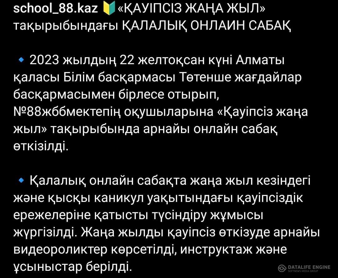 » "ҚАУІПСІЗ ЖАҢА ЖЫЛ!" тақырыбындағы онлайн сабаққа оқушылар қатысты!