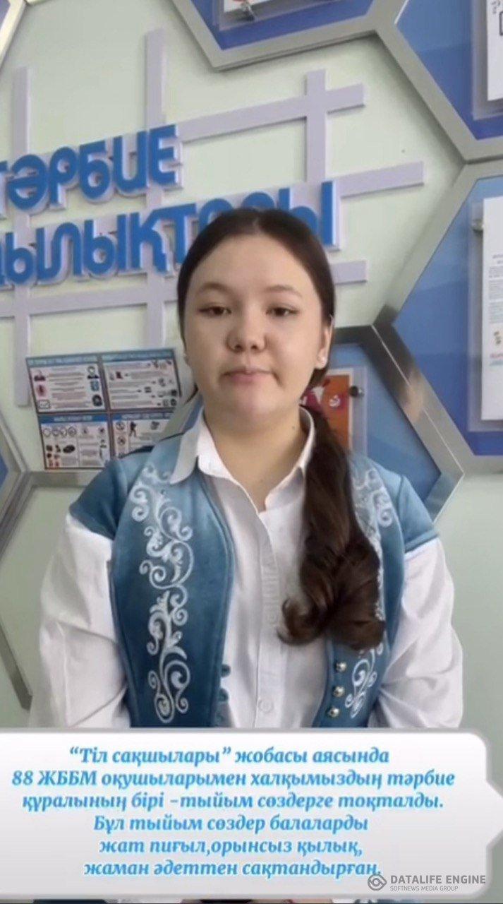 “Тіл сақшылары” жобасы аясында 88 ЖББМ оқушыларымен халқымыздың тәрбие құралының бірі -тыйым сөздерге тоқталды. Бұл тыйым сөздер балаларды жат пиғыл,орынсыз қылық, жаман әдеттен сақтандырған.