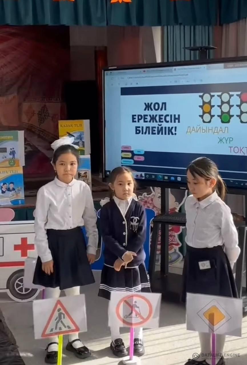 Бастауыш сынып оқушылар жол белгілерінің маңызын түсініп, жол жүру ережелерін пысықтады. Сабақ барысында көрініс қойылып, пазл құрастырып, топ бойынша сурет салып, сұрақтарға жауап алынып, ойын ойнатылды.Ойын сабақта оқушылар жолда жүру ережелерін және жол қозғалыс белгілерін жақсы білетіндерін көрсетті.