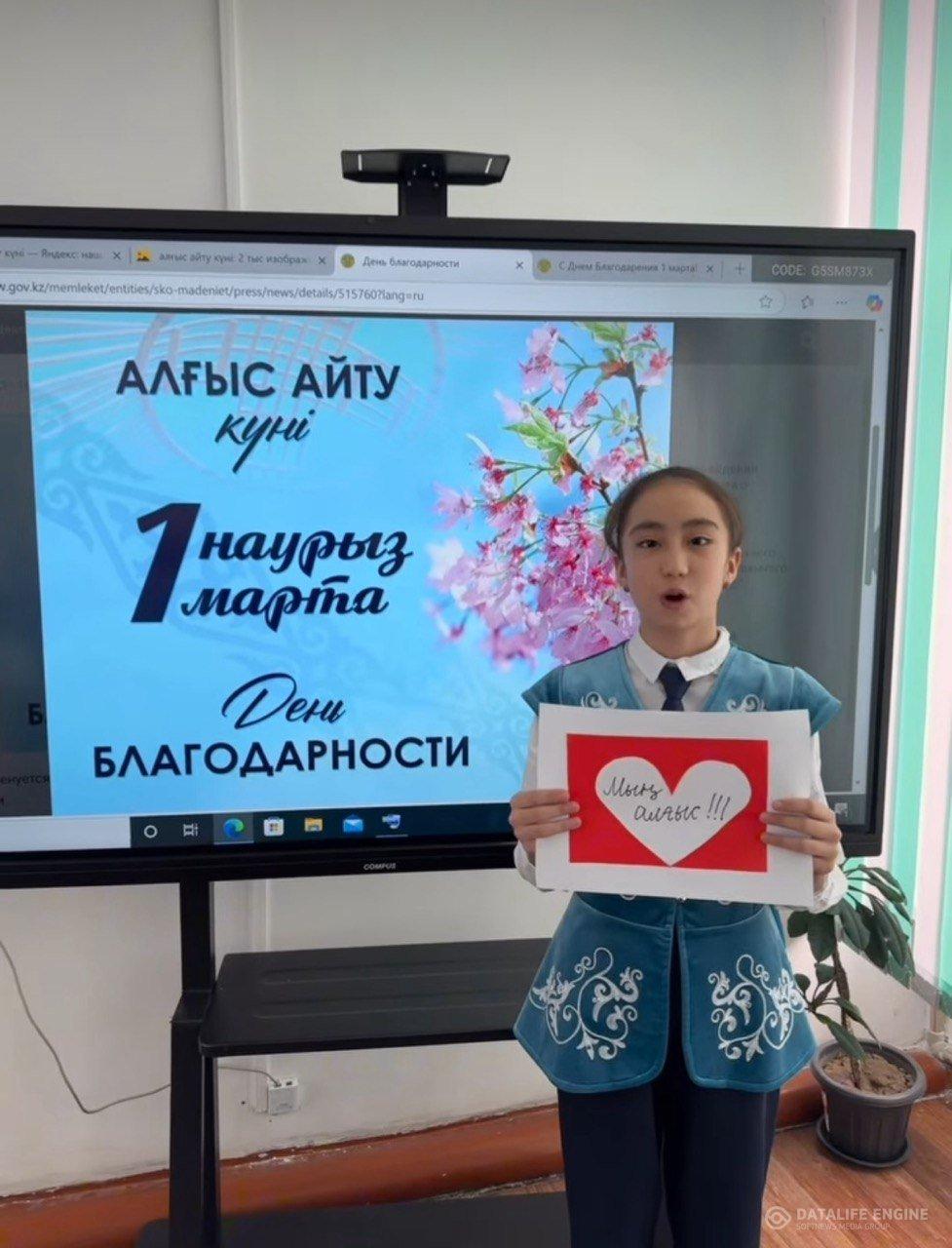 «1 наурыз- Алғыс айту күні» мерекесіне арналған 1-11 сыныптар арасында челлендж ұйымдастырылды.