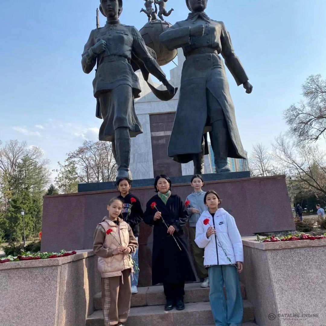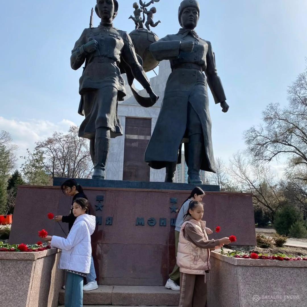 №88 Жалпы білім беретін мектеп 6 "ә"сынып оқушыларының "Ұлы Жеңіс мұрагерлері" жобасы аясында Әлия мен Мәншүк мемориалды скверінде тапсырманы орындауы.