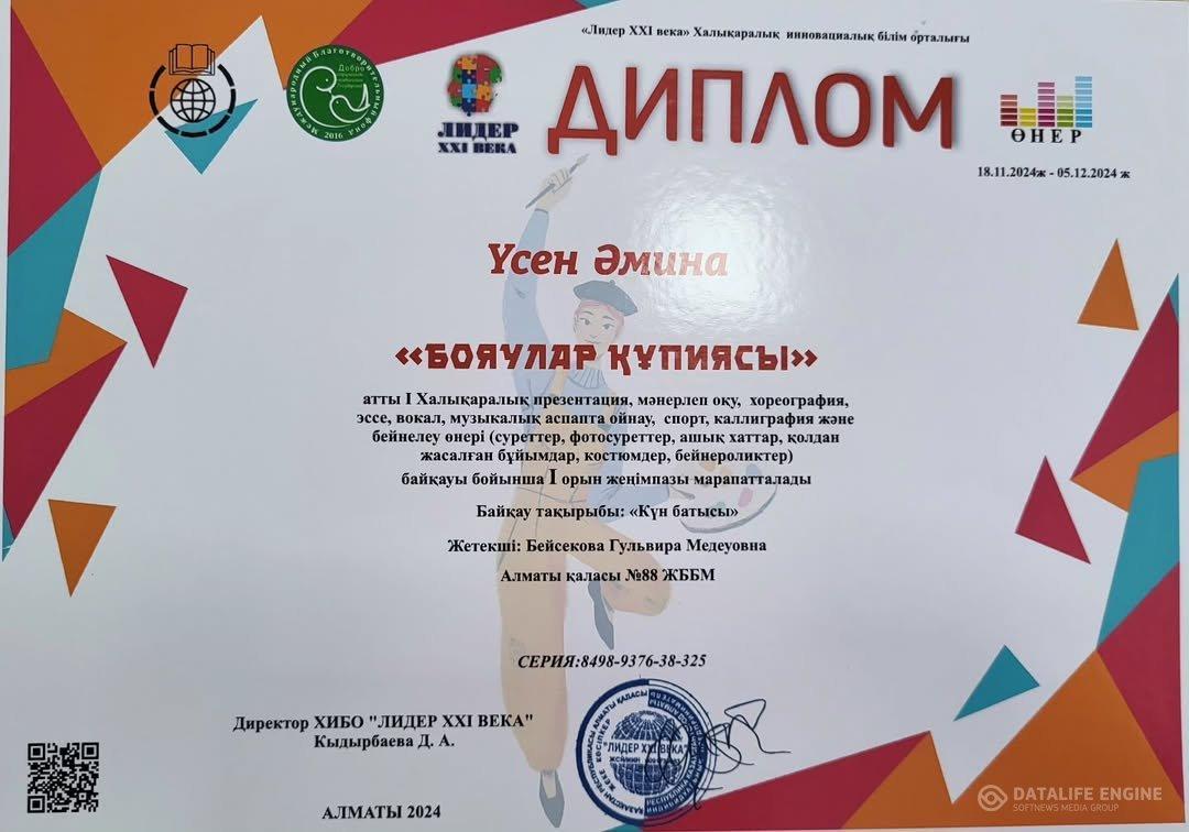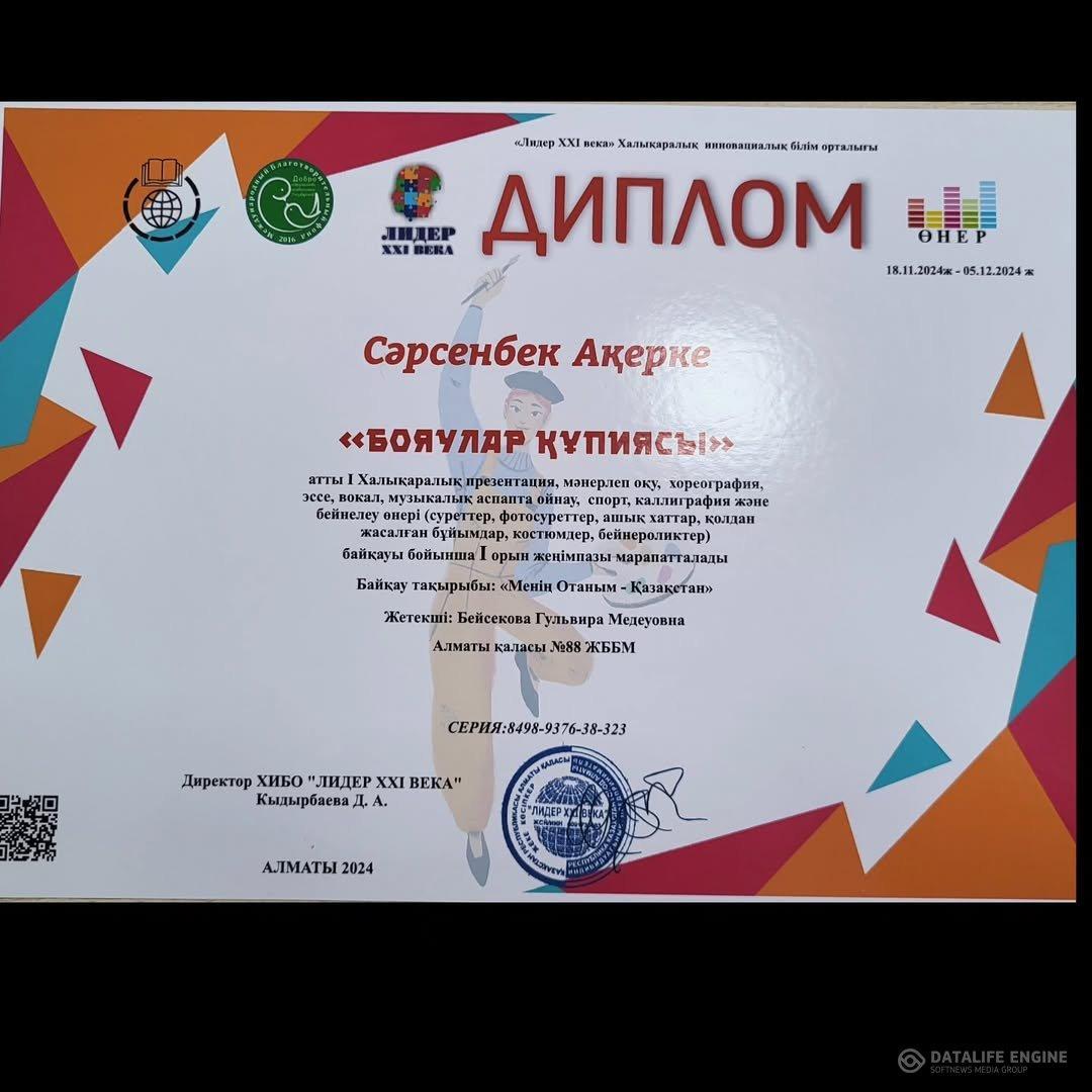 Құттықтаймыз! 4 "а" сынып оқушысы Жұман Бекарыс. Жарайсың.