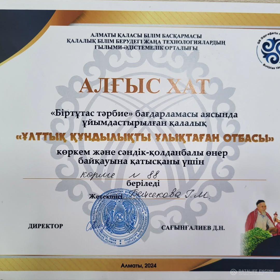 28 февраль 2025 0 1 2 3 4 5 Құттықтаймыз! "Біртұтас тәрбие бағдарламасы"бойынша Алғыс хат технология пәнінің мұғалімі Г.М.Бейсековаға берілді.Құттықтаймыз!