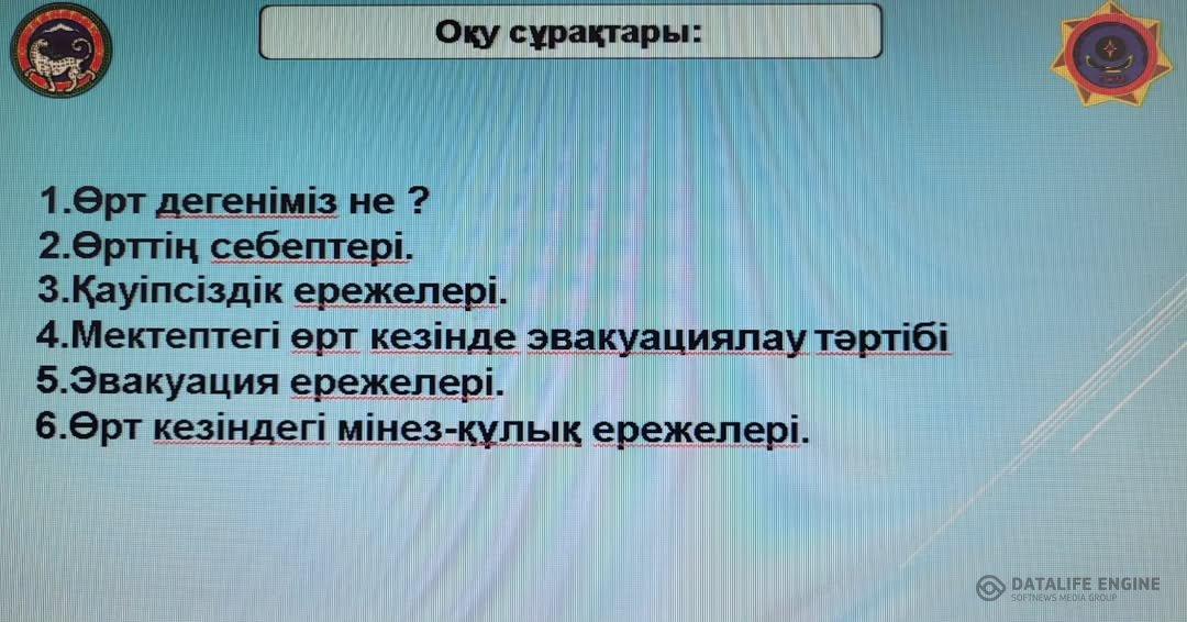 ҚР ТЖМ Алматы қаласының Төтенше жағдайлар департаменті " Жалпы білім беретін мектептердегі өрт қауіпсіздігінің жалпы ережелері" тақырыбында 7-8 сынып оқушыларымен онлайн сабақ өткізді.