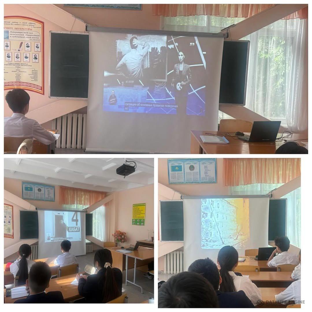 " Көмек" бағдарламасы бойынша "Жер сілкінісі жағдайындағы қауіпсіздік" тақырыбымен 5-9 сыныптарда сынып сағаты өткізілді.