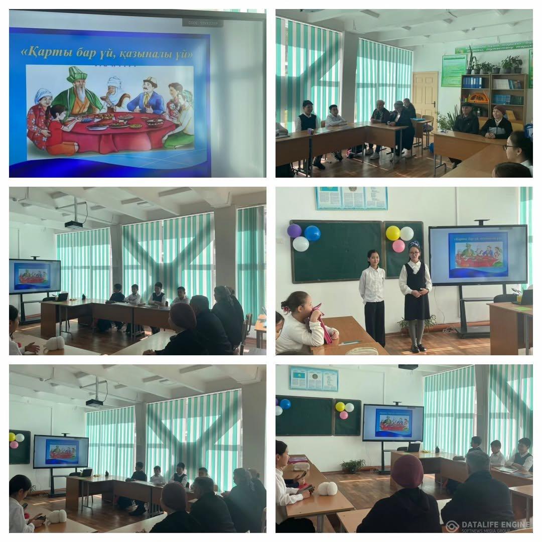 Қазан айы қарттар мерекесі қарсаңында 5"ә" сынып оқушыларымен " Қарты бар үй қазыналы үй" тақырыбында қарттармен кездесу кеші ұйымдастырылды. Оқушыларға ұлттық салт-сана, үлкенді құрметтеу, қадірлеу, аталы сөзден ғибрат алу туралы айтылды.Мемлекетіміз қарттарға жан-жақты қолдау көрсетіп, қамқорлық жасауда, олардың жүріп өткен жолдары бүгінгі ұрпаққа үлкен мұра. Қадірлі ата-әжелер аман болсын!