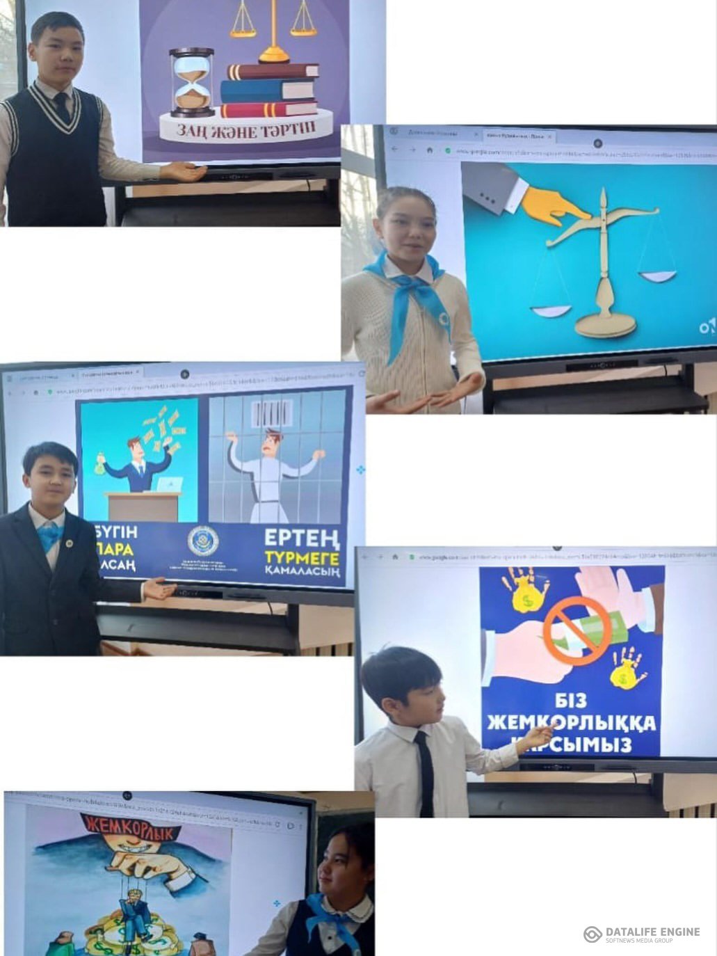 12 январь 2026 0 1 2 3 4 5 Бүгінгі сынып сағаты 6 сыныппен “Заң және тәртіп” - аясында өткізілді Бүгінгі сынып сағаты 6 сыныппен “Заң және тәртіп” - аясында өткізілді. Оқушылар заң мен әділдікті дәріптей отырып, жемқорлыққа қарсы өз көзқарастарын айқын білдірді.