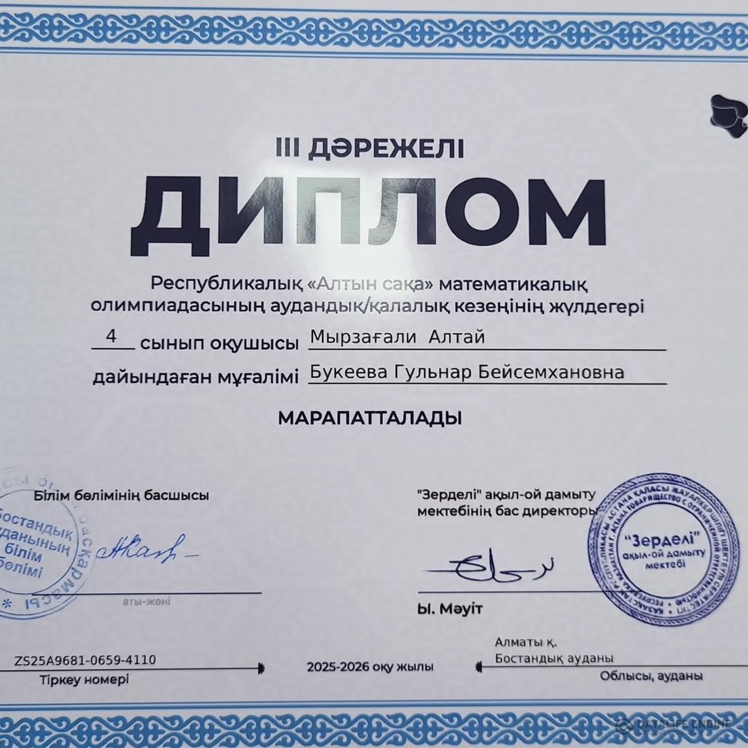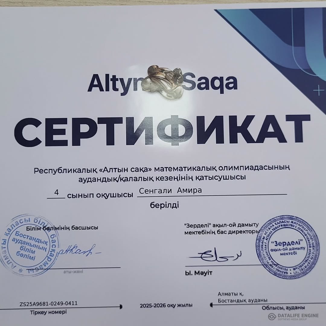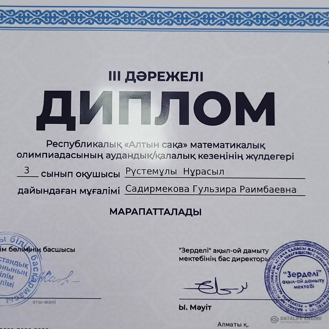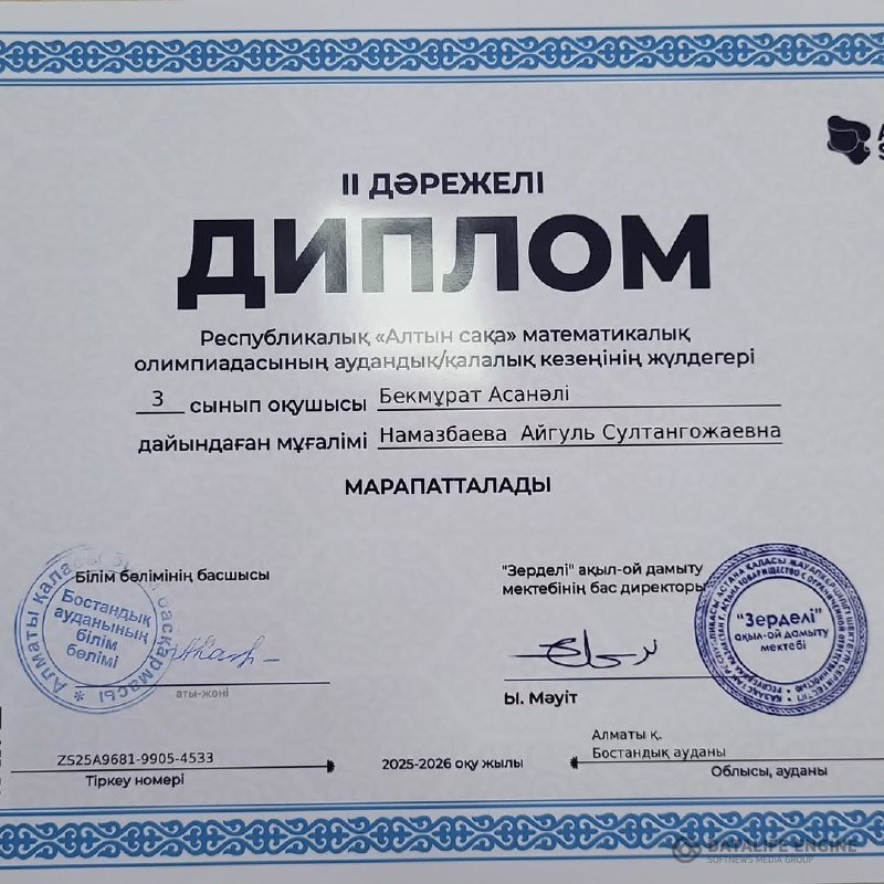 басқармалары бірлесе ұйымдастыруымен 3-4 сыныптарға арналған Республикалық «Алтын сақа» олимпиадасының аудандық кезеңі өтті. Диплом 3 сынып оқушысы Бекмұрат Асанәлі 2-орын, Рүстемұлы Нұрасыл 3-орын, 4 сынып оқушылары Мырзағали Алтай 3-орын, Сенгали Амира сертификат иеленді.