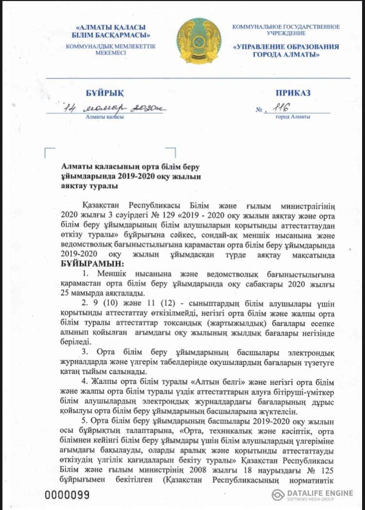 21 май 2020 0 1 2 3 4 5 Алматы қаласының орта білім беру ұйымдарында 2019-2020 оқу жылын аяқтау туралы