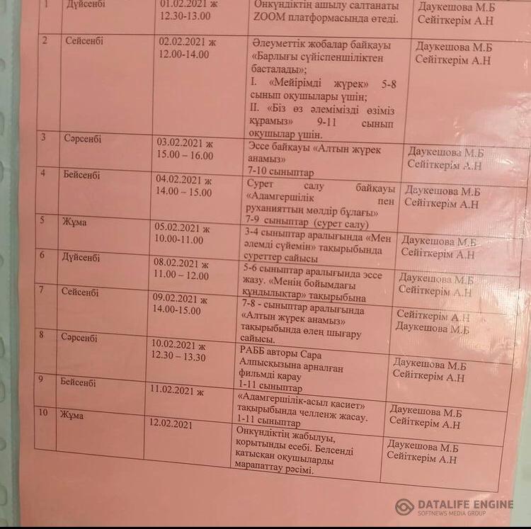 03 февраль 2021 0 1 2 3 4 5 1 ақпан 2021ж. Өзін-өзі тану пәнінен қашықтан "Махаббат пен Шығармашылық педагогикасы" атты онкүндіктің ашылуы болып өтті