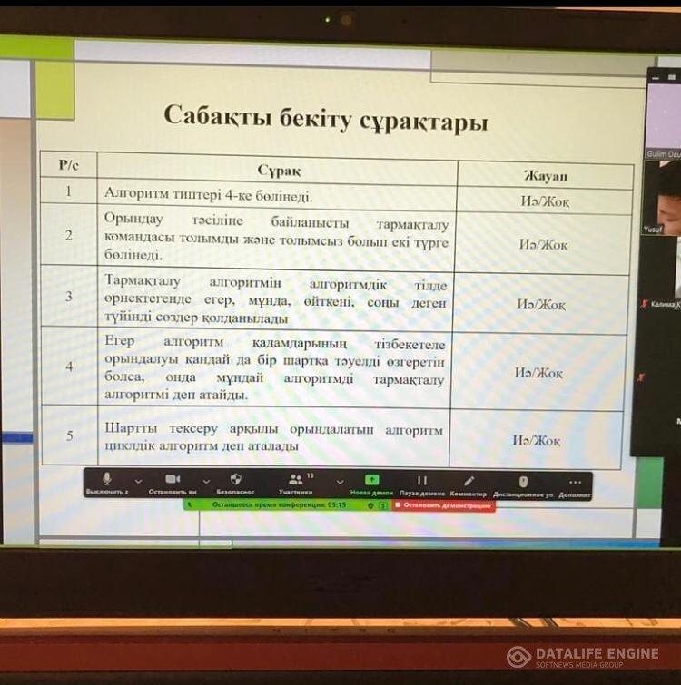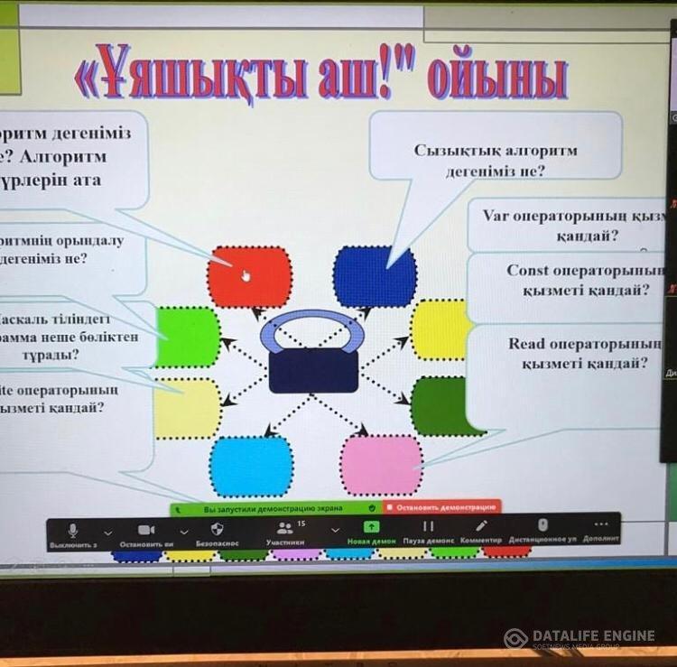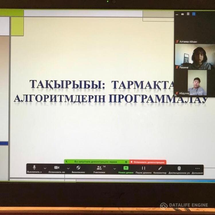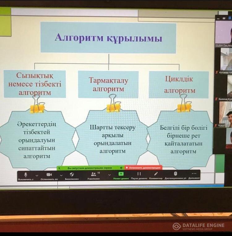 23 февраль 2021 0 1 2 3 4 5 Жаратылыстану пәндері апталығында информатика пәні мұғалімі Дәулетжанова Гүлім 7 "Ә" сынып оқушыларымен "Тармақталу алгоритмдерін программалау" тақырыбында қашықтан ашық сабақ өткізу сәттерінен