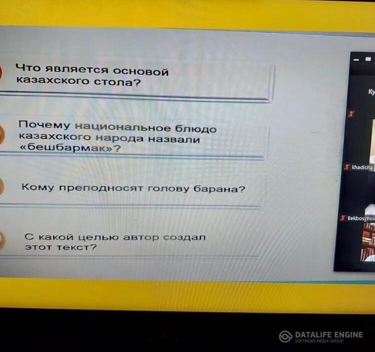 03 март 2021 0 1 2 3 4 5 Қоғамдық-гуманитарлық пәндер апталығында орыс тілінен 8 "Ә" сыныбында ашық сабақ өткізілді. Тақырыбы: "Национальная еда". Пән мұғалімі Каренеева Жанна Алпысбайқызы