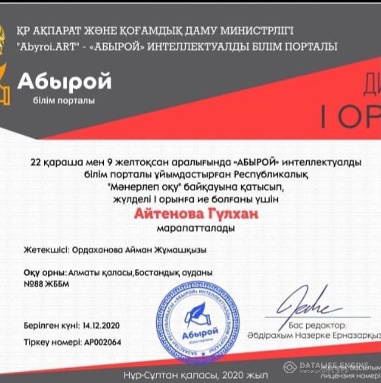 КГУ «Общеобразовательная школа №88» Управления образования города Алматы