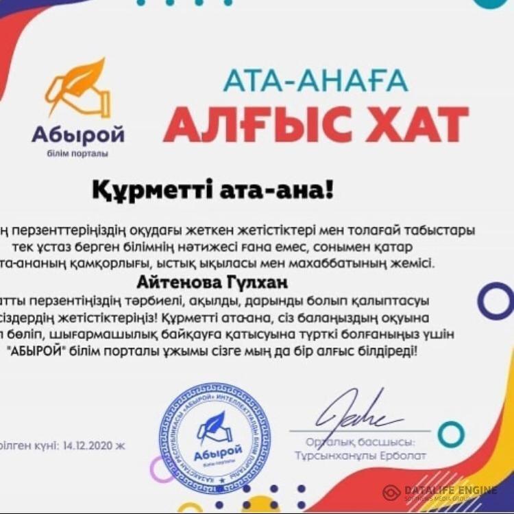 » Құттықтаймыз! Айтенова Гүлхан. Пән мұғалімі Ордаханова Айман Жұмашқызы