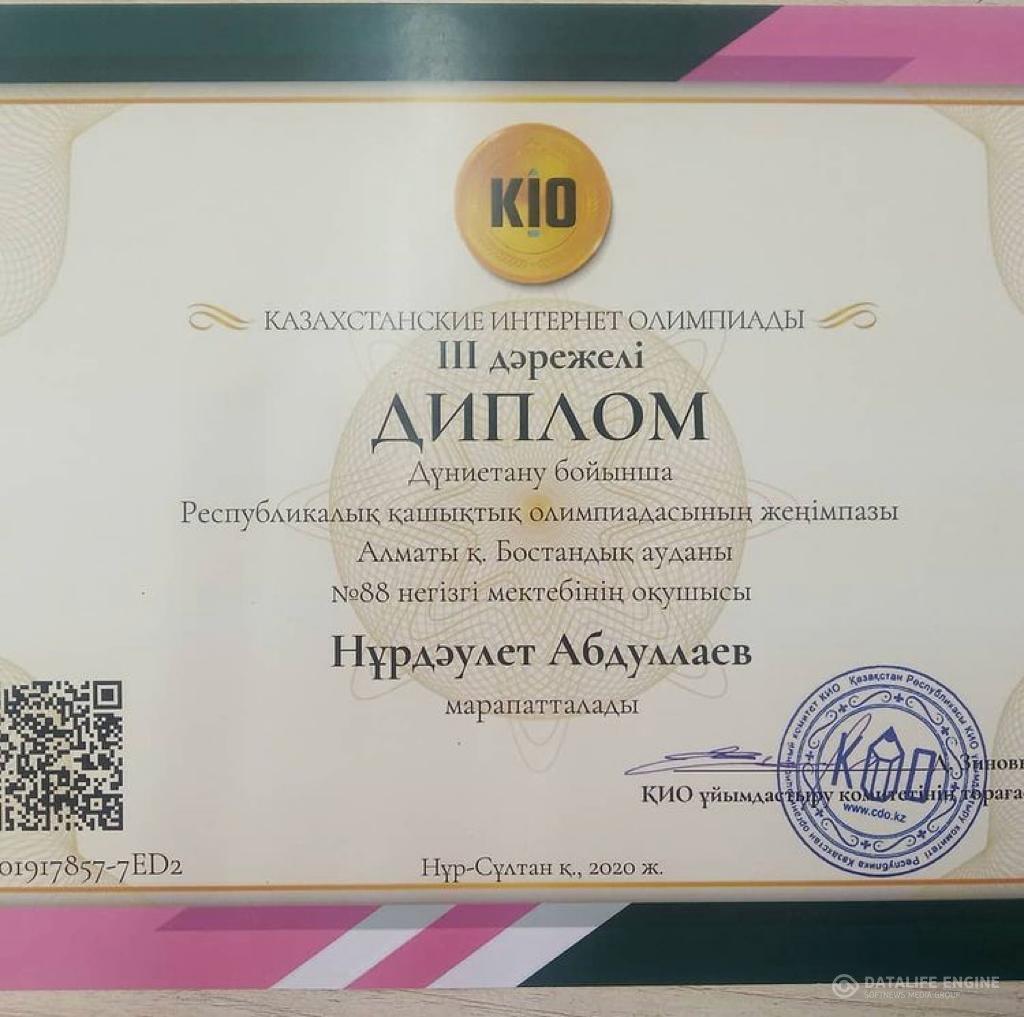 18 февраль 2021 0 1 2 3 4 5 Республикалық қашықтық олимпиадасының дүниетану пәнінен жүлдегері 3 "а" сынып оқушысы Абдуллаев Нұрдәулет. Құттықтаймыз, жетістіктерге жете бер!!!