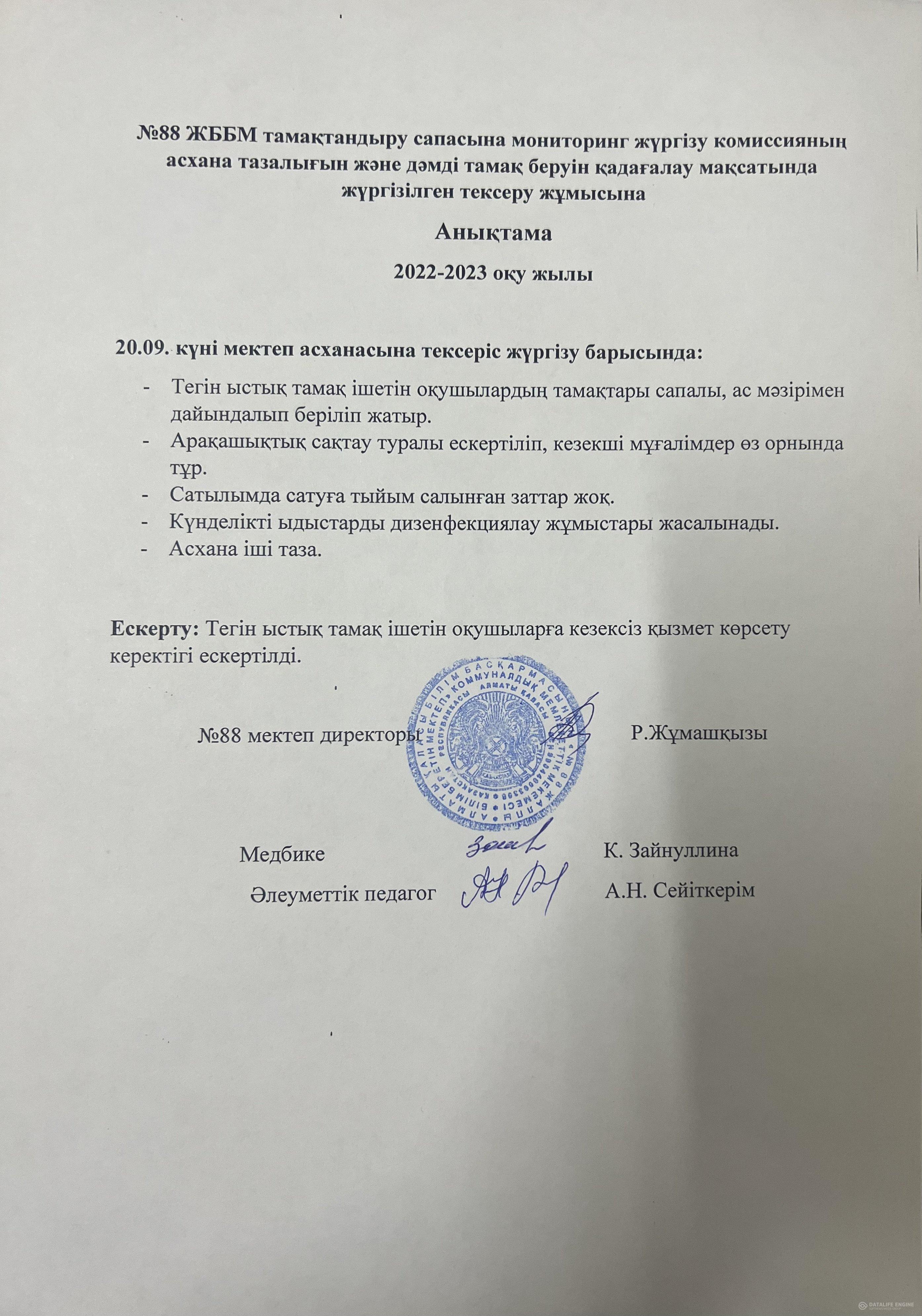 » 20.09.2022 ж. мектеп асханасын тексеру анықтамасы