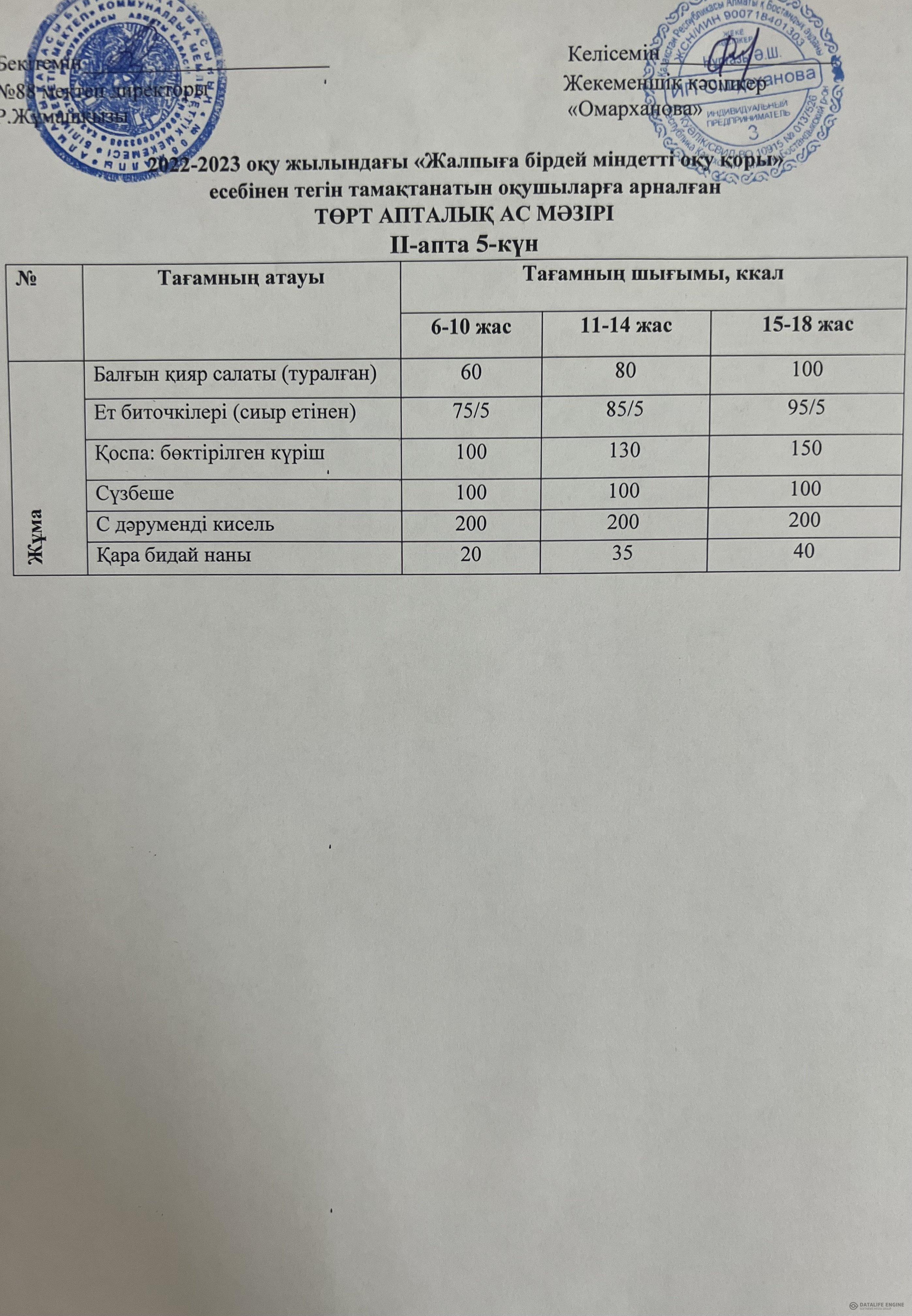 » 07.10.2022 ас мәзірі(фотосуреті)