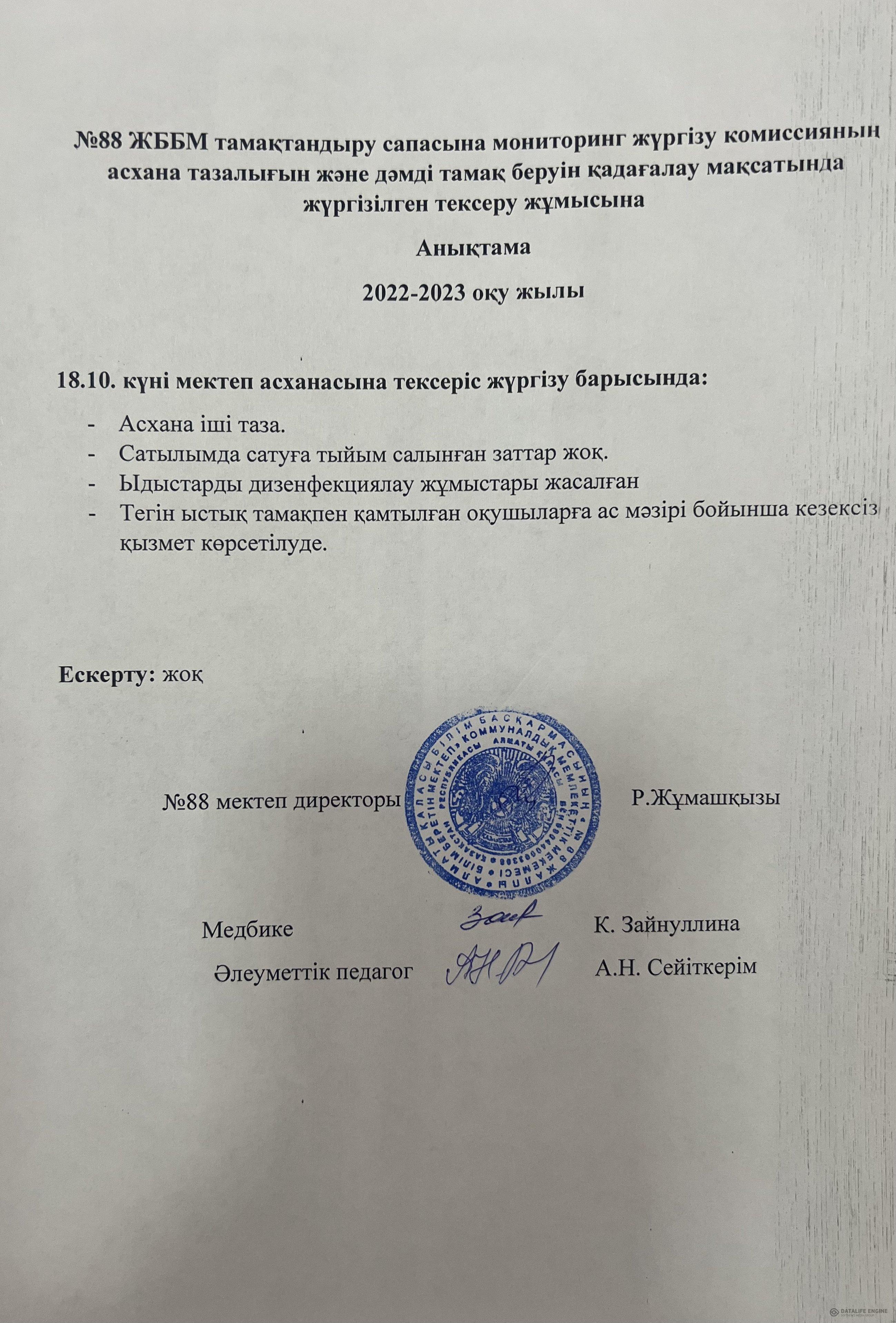 » 18.10.2022 ж. мектеп асханасын тексеру анықтамасы
