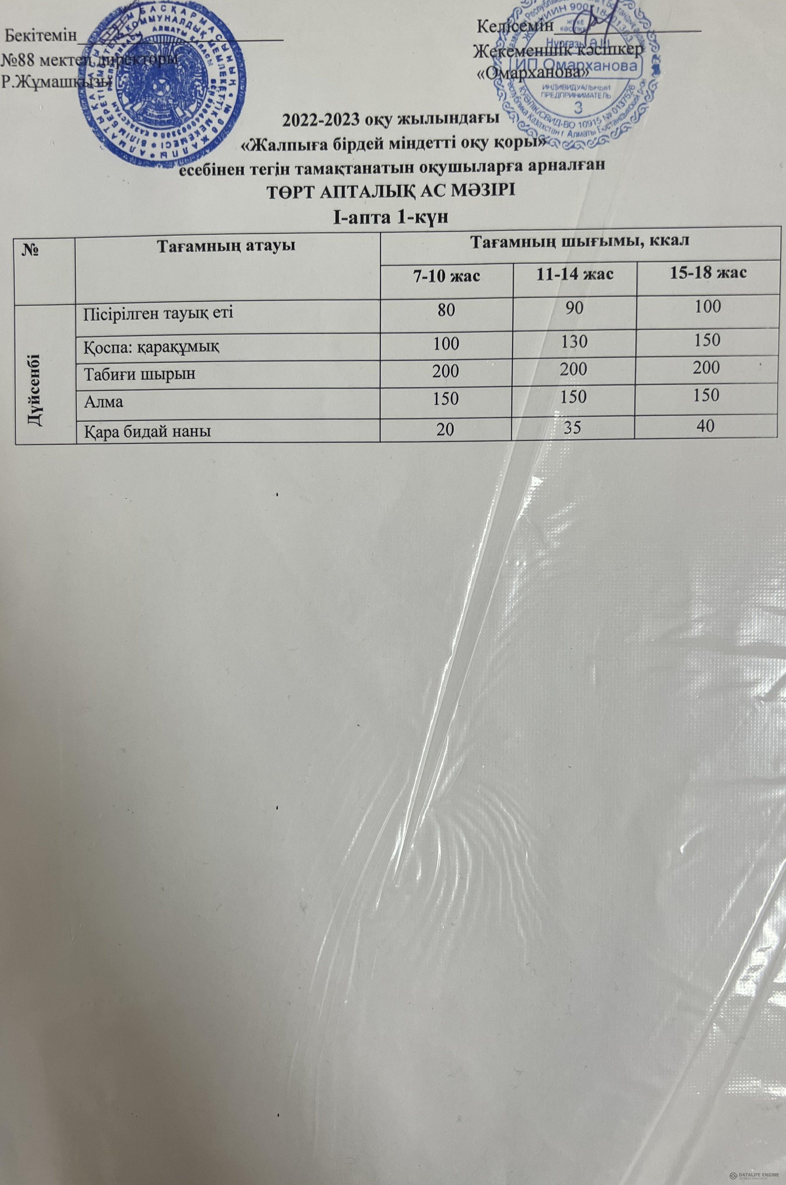 » 22.10.2022 ас мәзірі(фотосуреті)