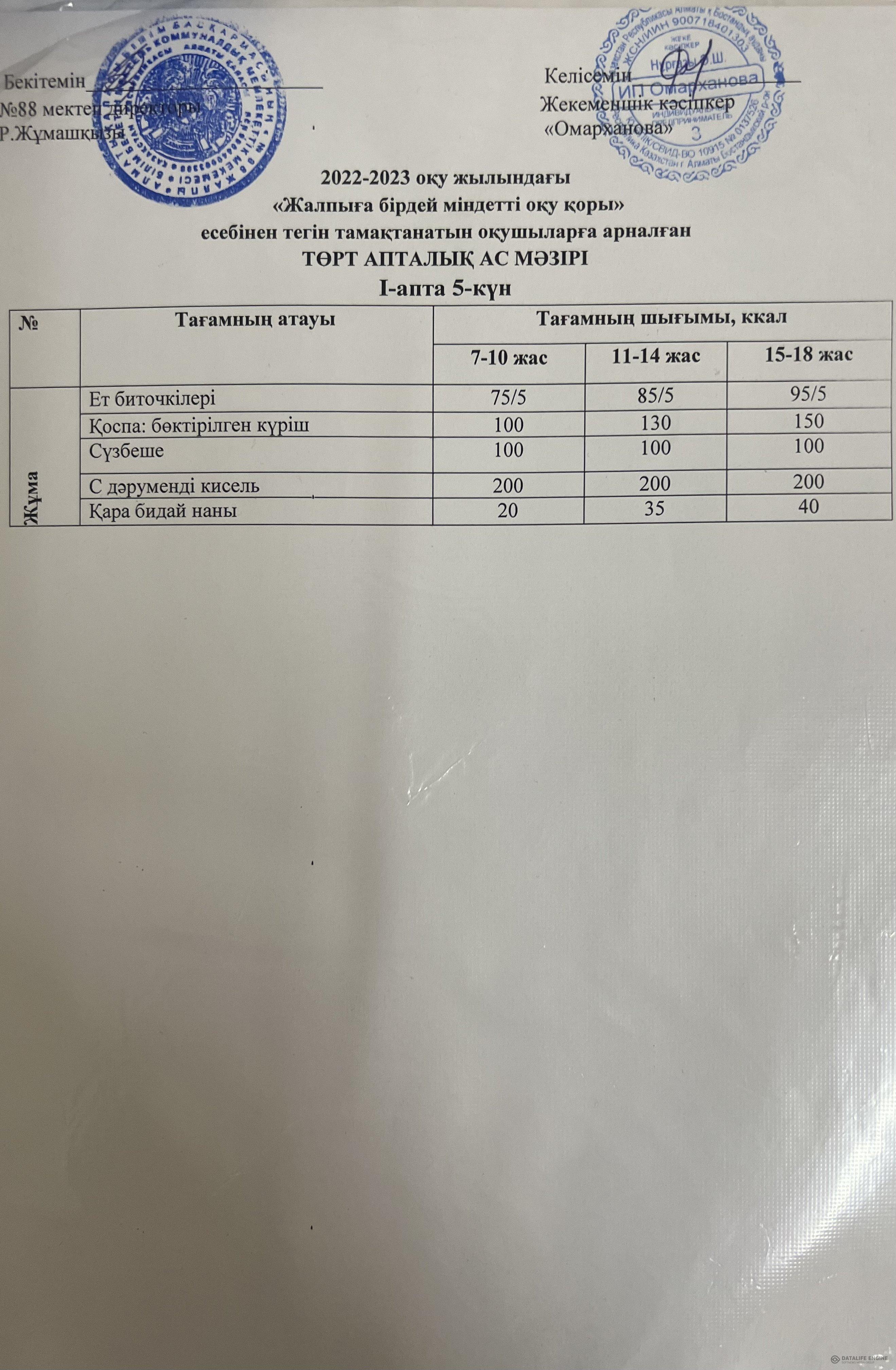» 28.10.2022 ас мәзірі(фотосуреті)