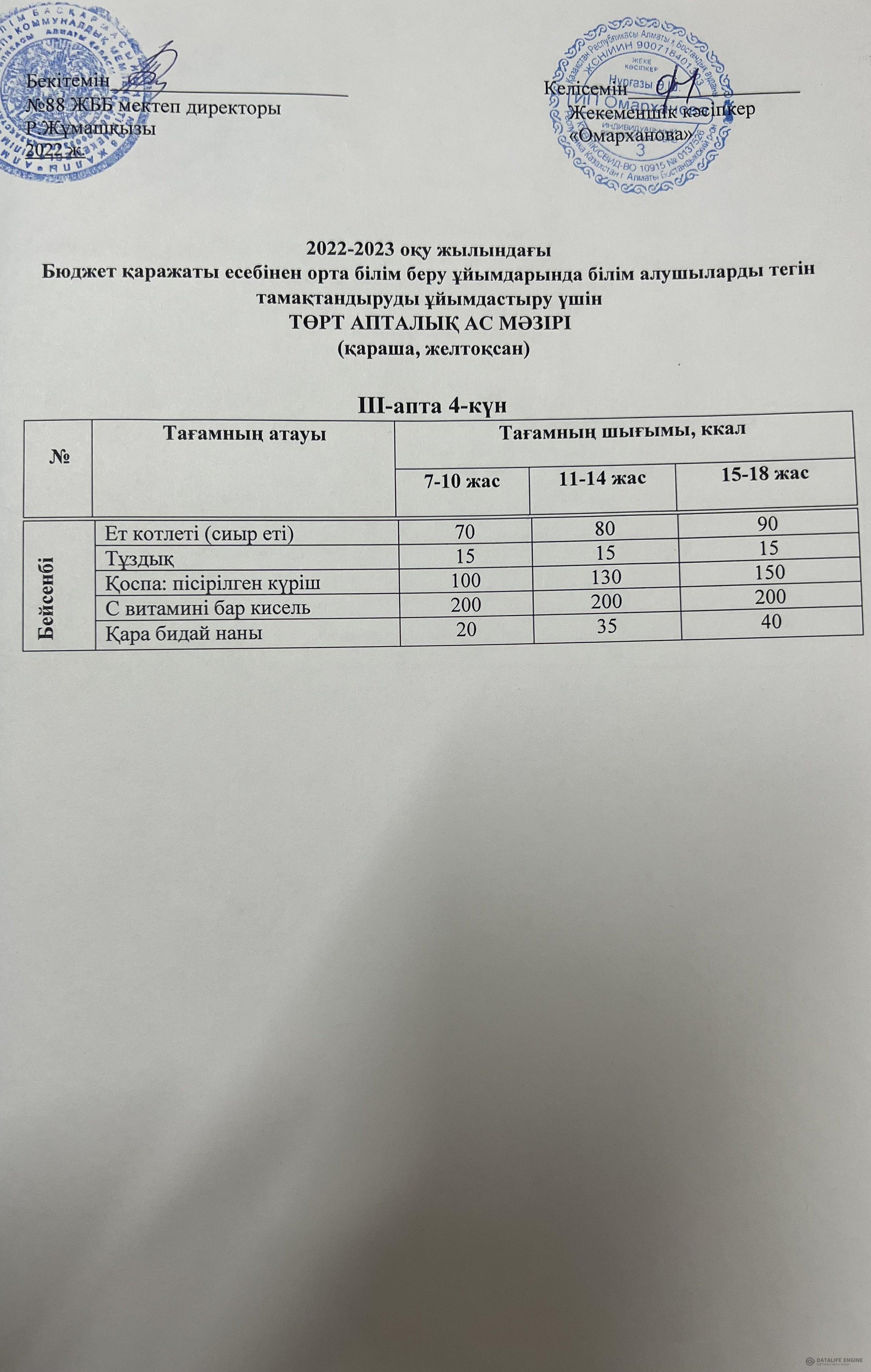 21.11.2022 ас мәзірі(фотосуреті)