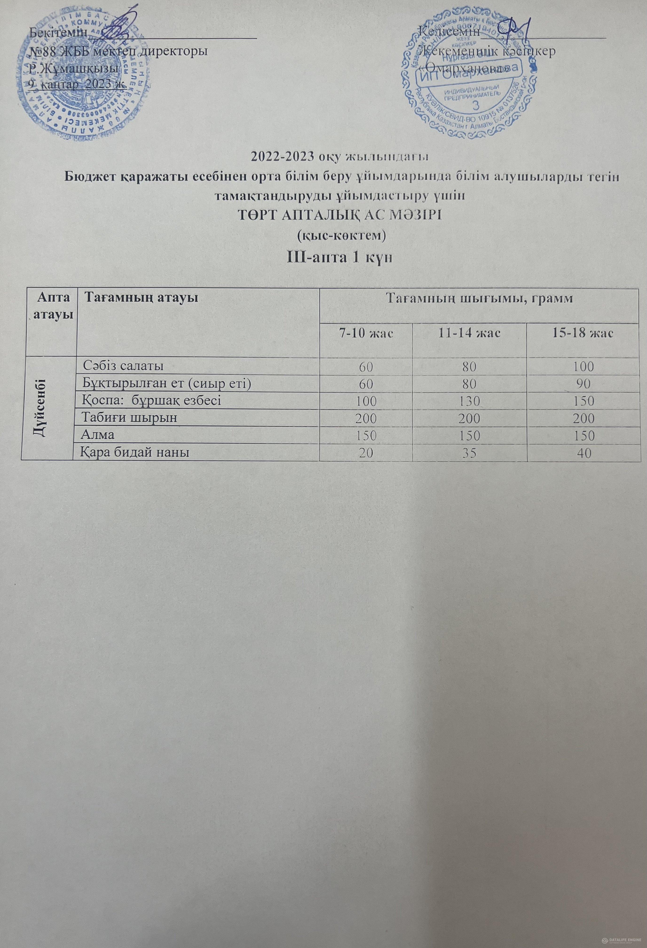 » 23.01.2023 ас мәзірі(фотосуреті)