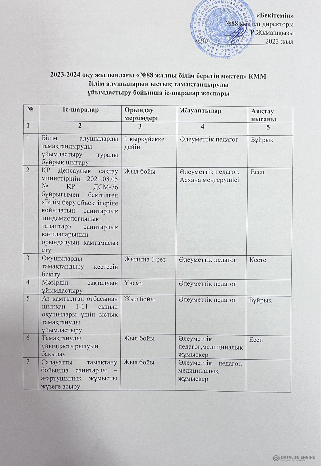 01 сентябрь 2023 0 1 2 3 4 5 Білім алушыларды ыстық тамақтандыруды ұйымдастыру бойынша іс-шаралар жоспары