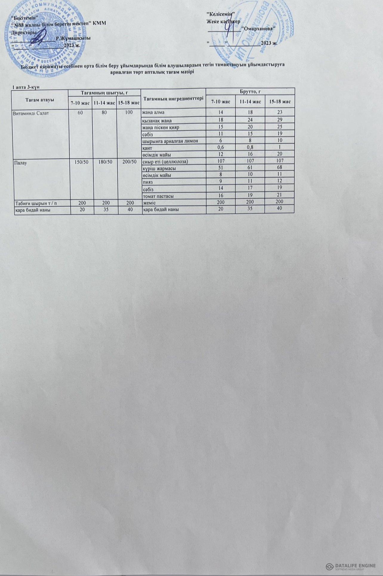 » 08.11.2023 ас мәзірі(фотосуреті)