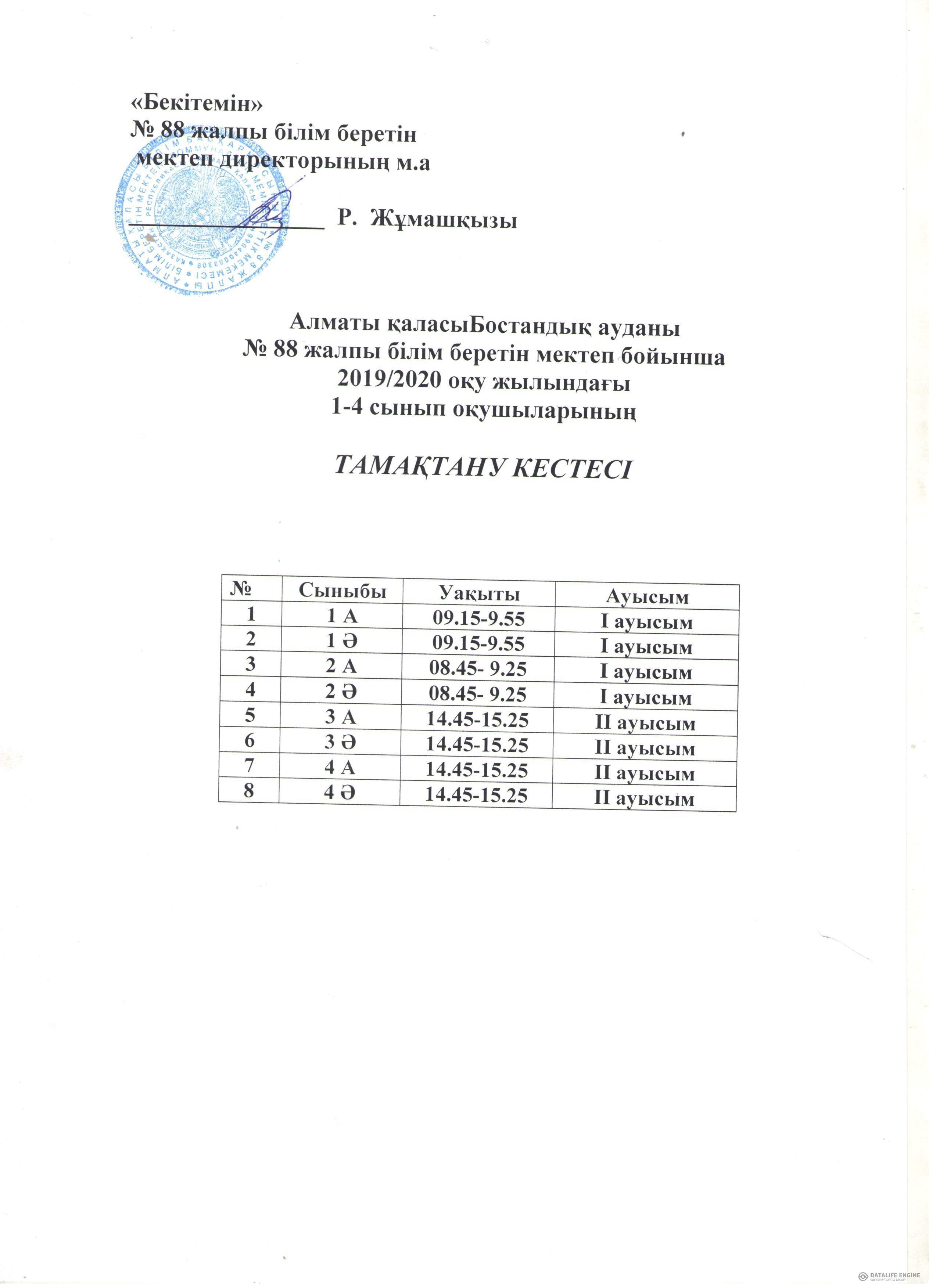 Тамақтану кестесі 1-9 сынып /2019-2020 оқу жылы/