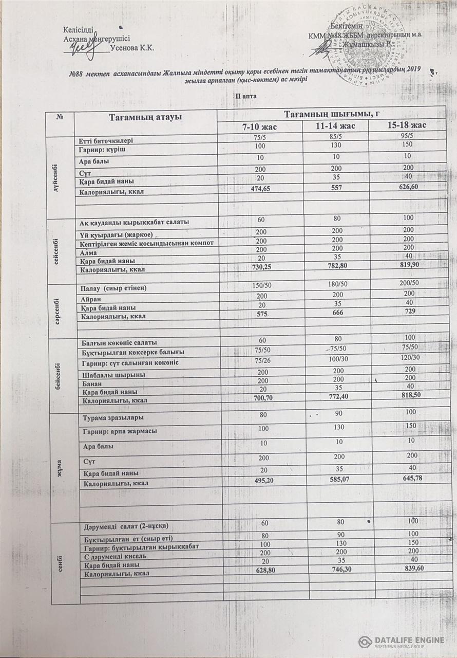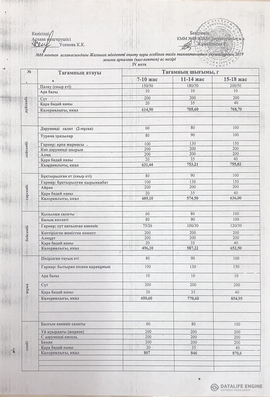 Тамақтану кестесі 1-9 сынып /2019-2020 оқу жылы/