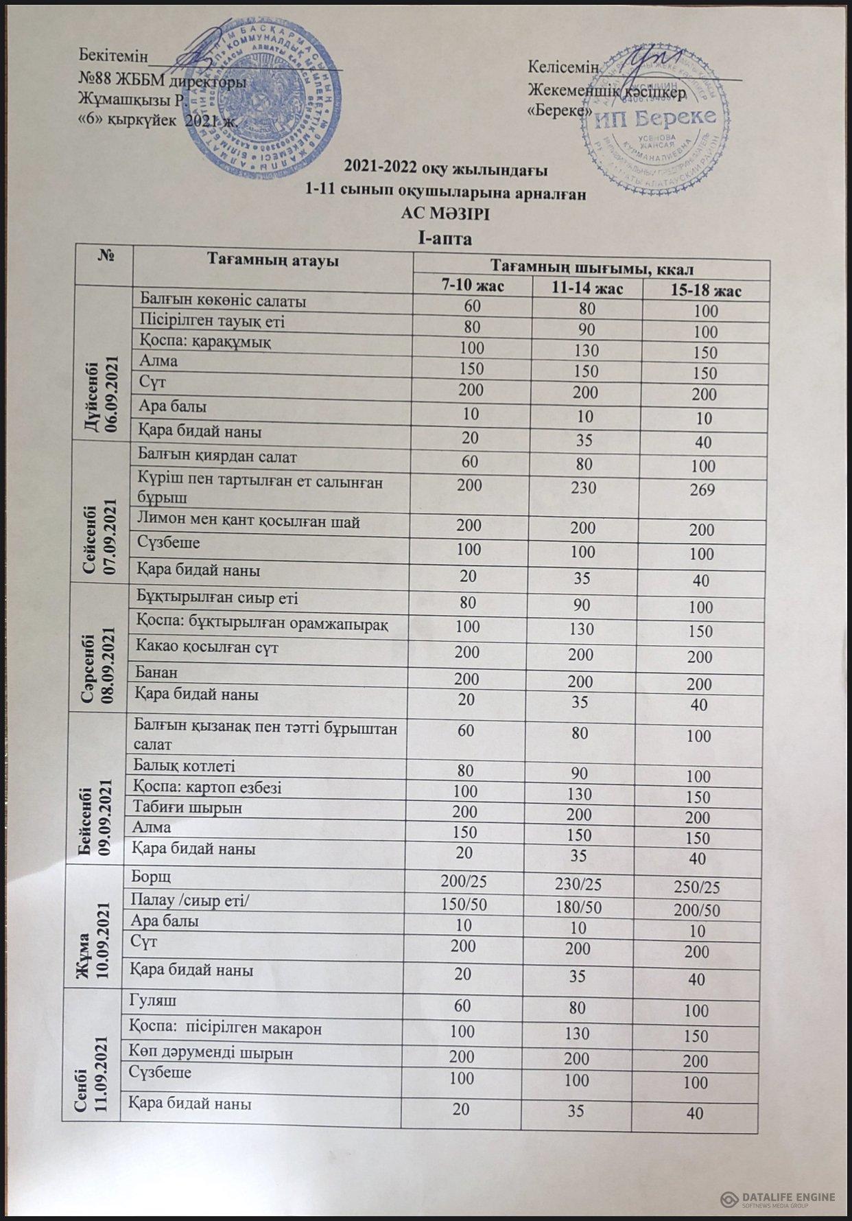 2021-2022 жаз-күз ас мәзірі 1 апта