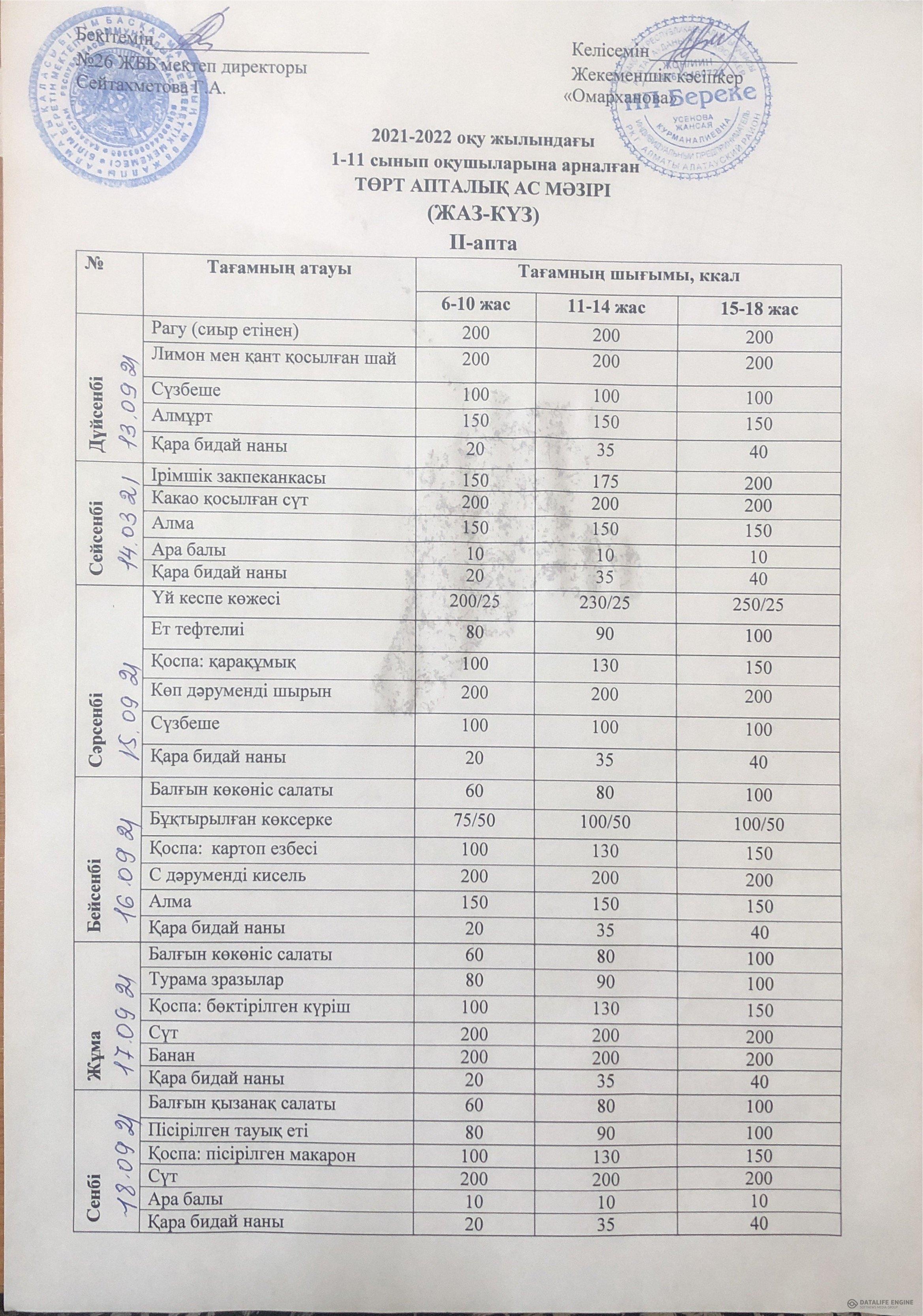 2021-2022 жаз-күз ас мәзірі 2 апта