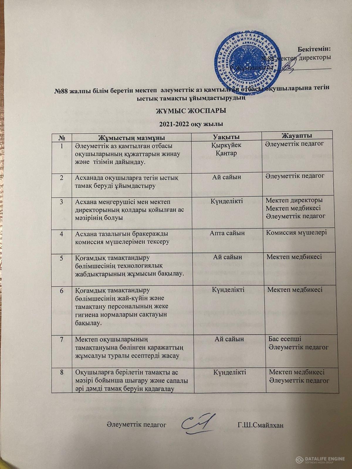2021-2022 оқу жылында ыстық тамақтандыруды ұйымдастыру бойынша іс-шаралар жоспары