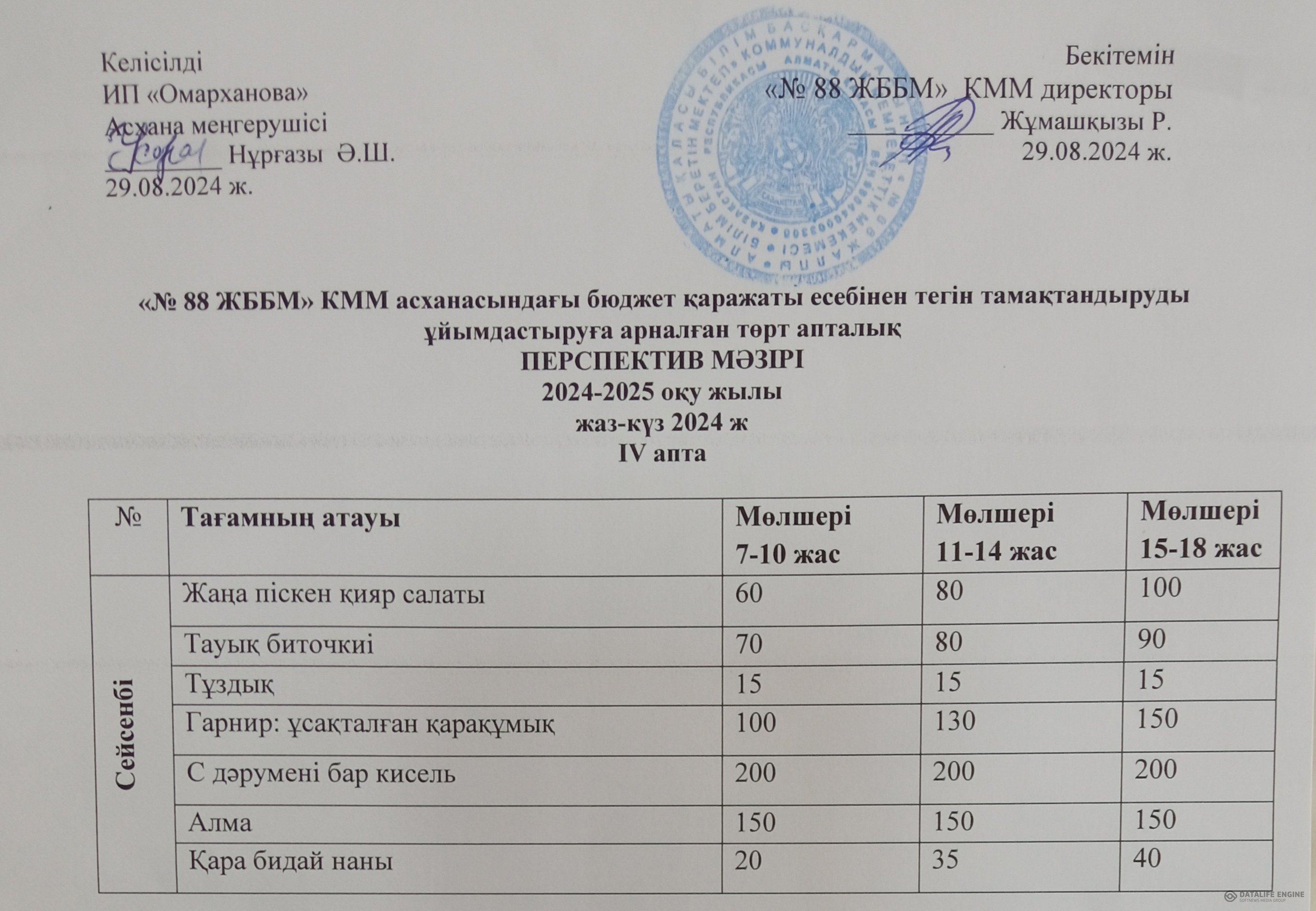 » 24.09.2024 ж. ас мәзірі (фотосуреті)