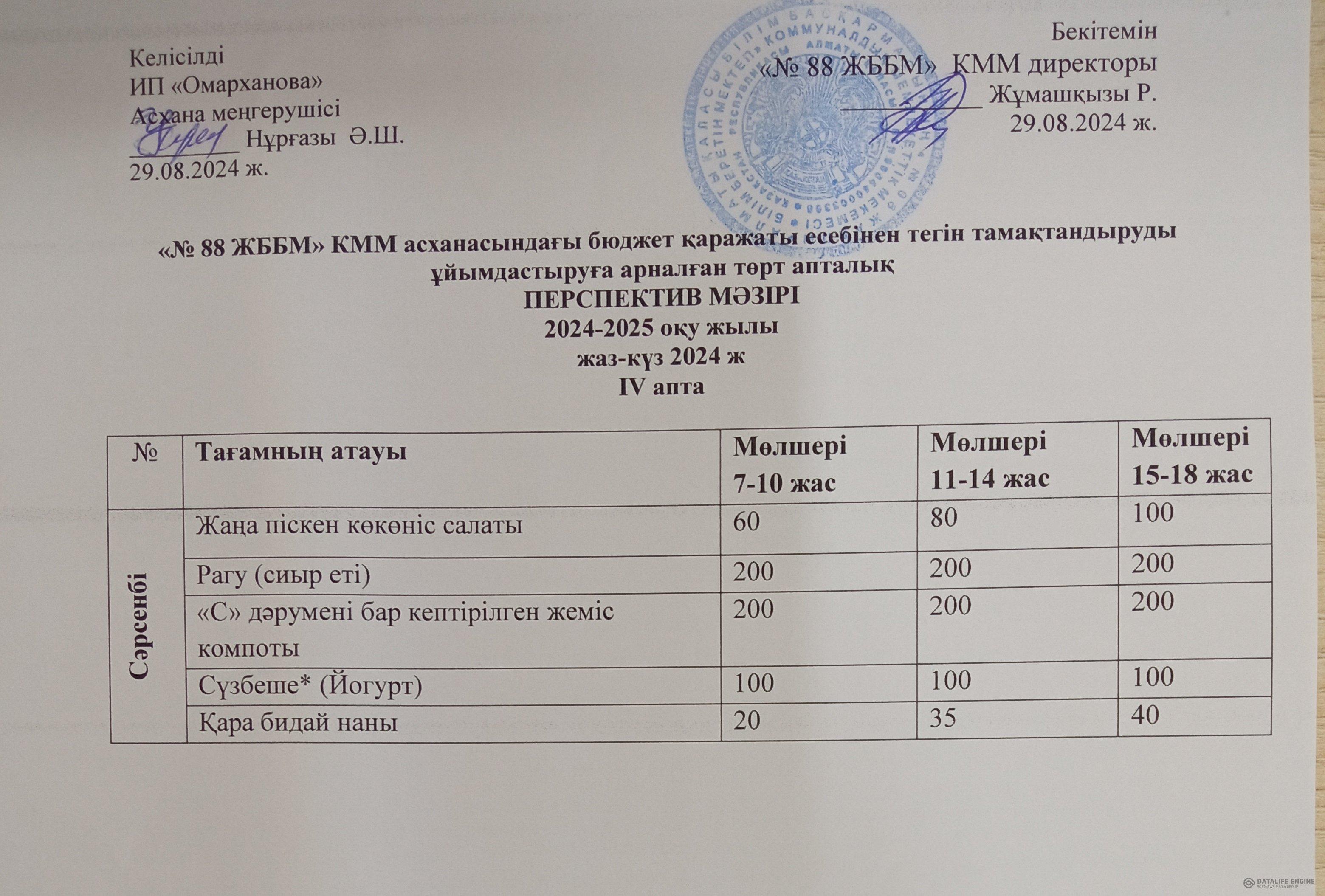 » 25.09.2024 ж. ас мәзірі (фотосуреті)