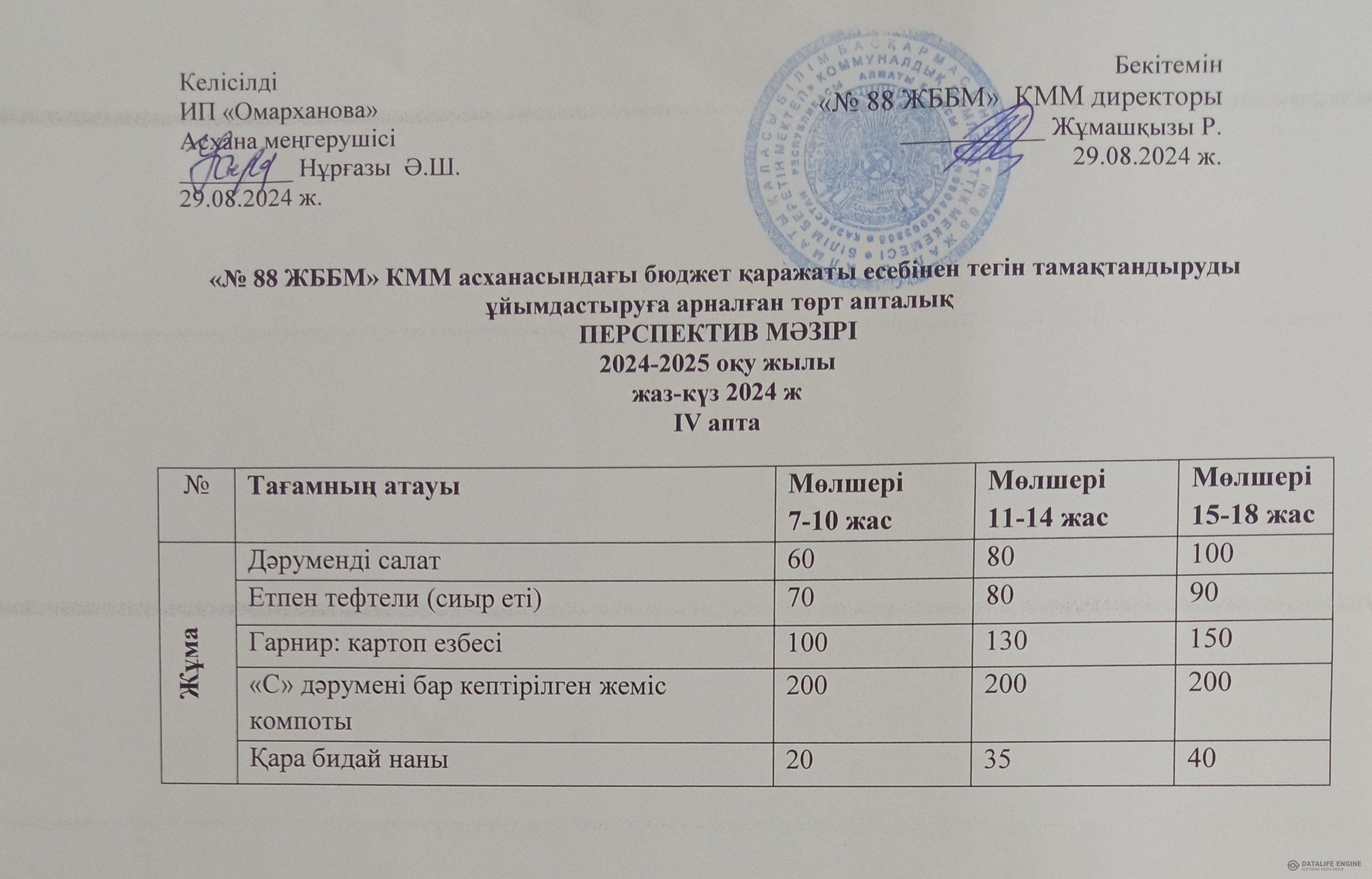 » 29.11.2024 ж. ас мәзірі (фотосуреті)