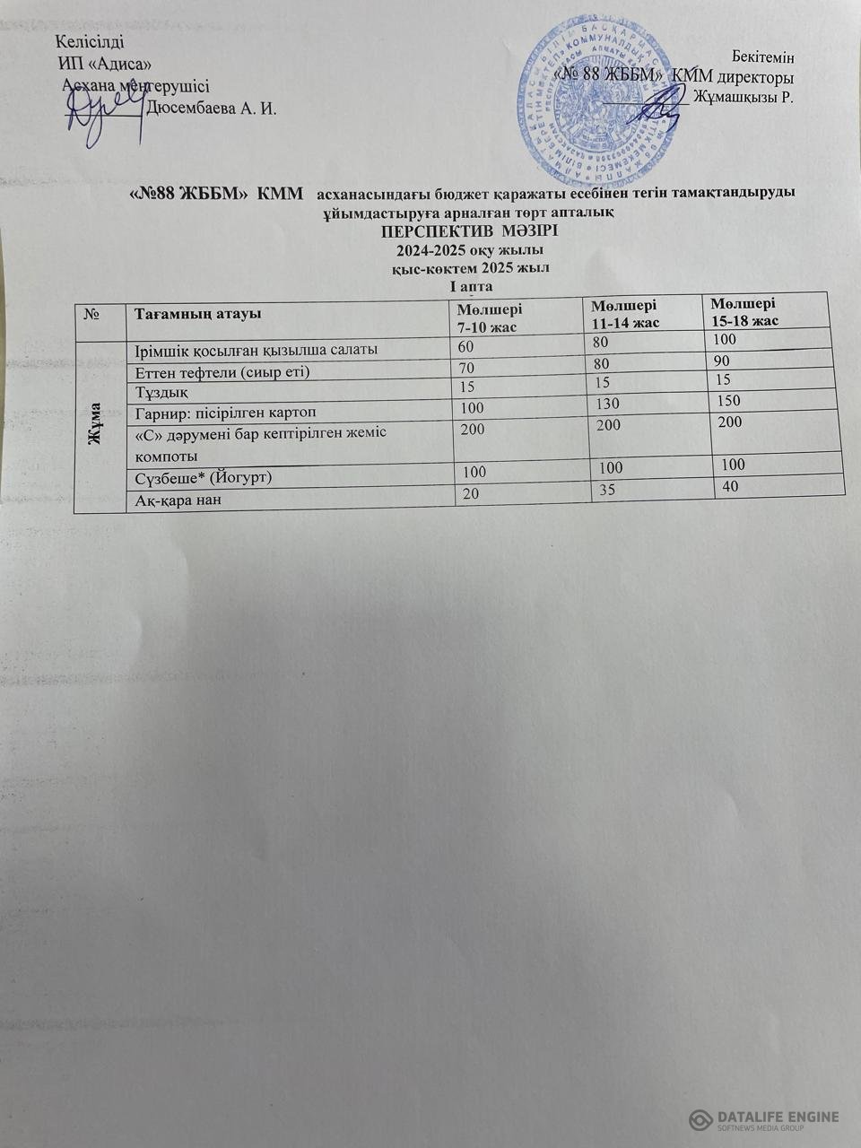 09.01.2025 ж. ас мәзірі (фотосуреті)