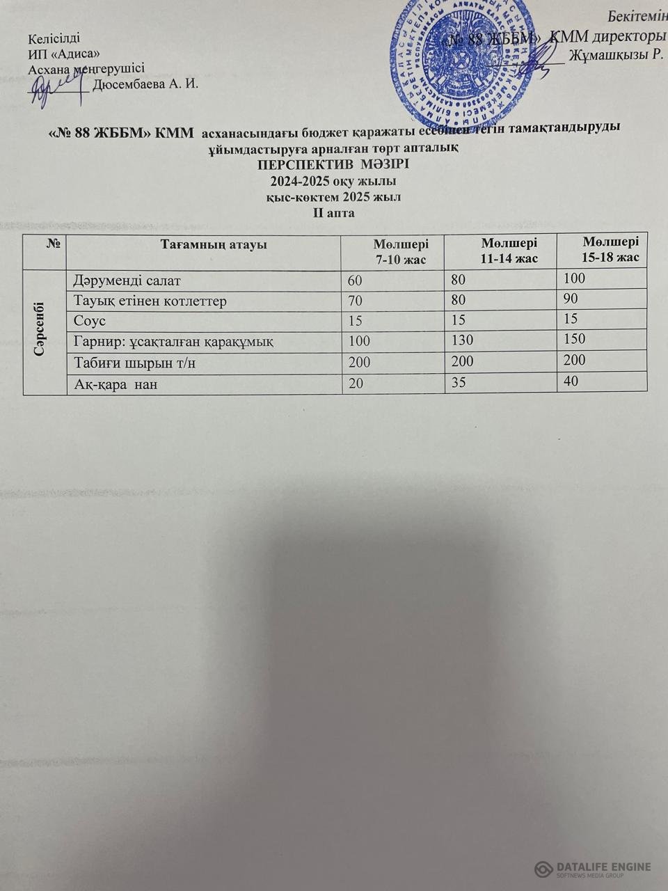 09.01.2025 ж. ас мәзірі (фотосуреті)