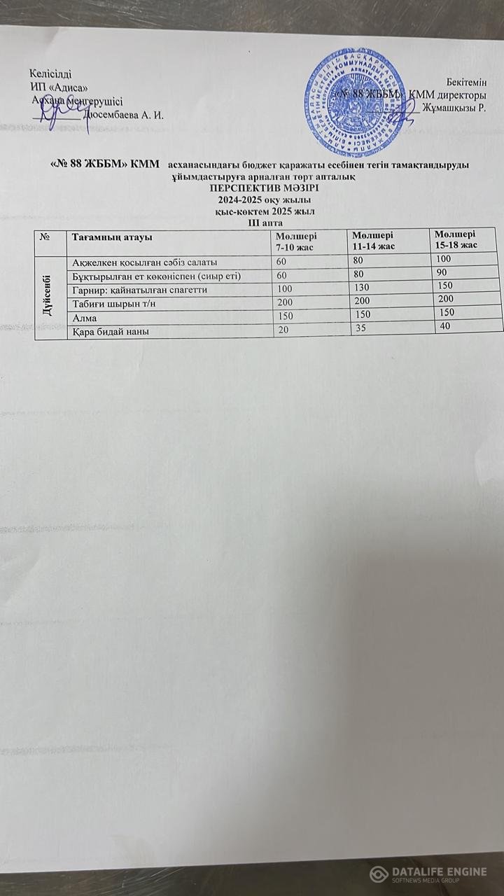 09.01.2025 ж. ас мәзірі (фотосуреті)