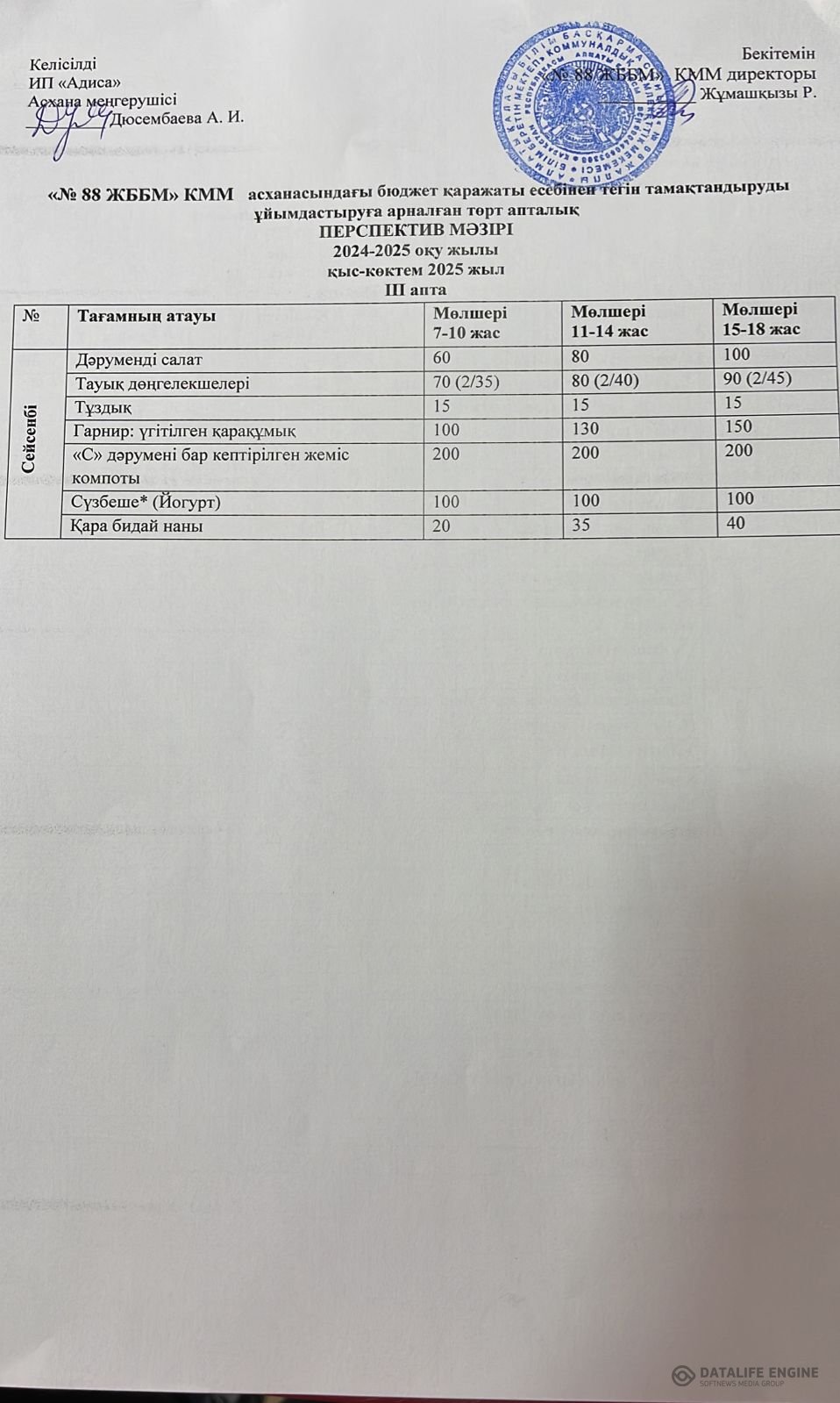 09.01.2025 ж. ас мәзірі (фотосуреті)