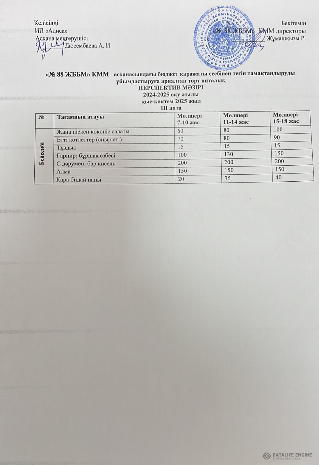 09.01.2025 ж. ас мәзірі (фотосуреті)
