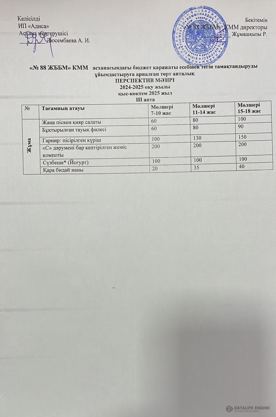 09.01.2025 ж. ас мәзірі (фотосуреті)