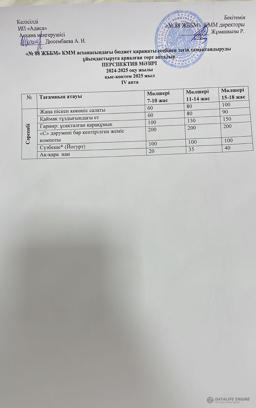 09.01.2025 ж. ас мәзірі (фотосуреті)