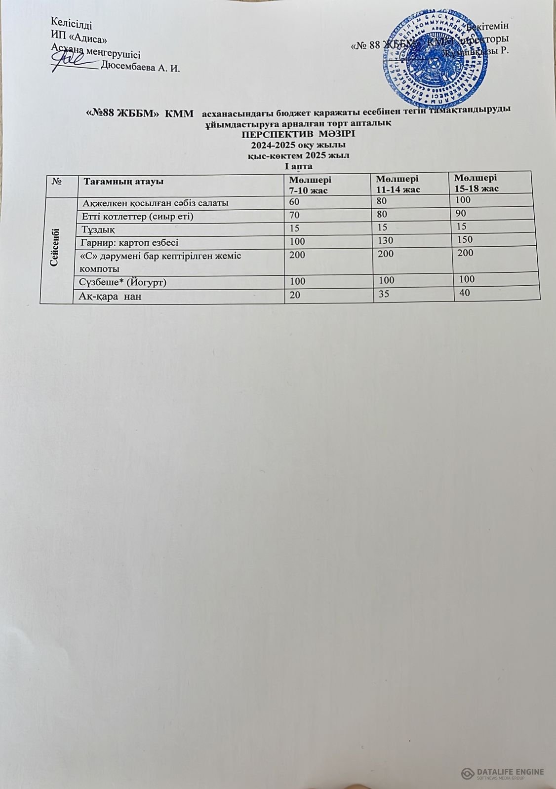 09.01.2025 ж. ас мәзірі (фотосуреті)
