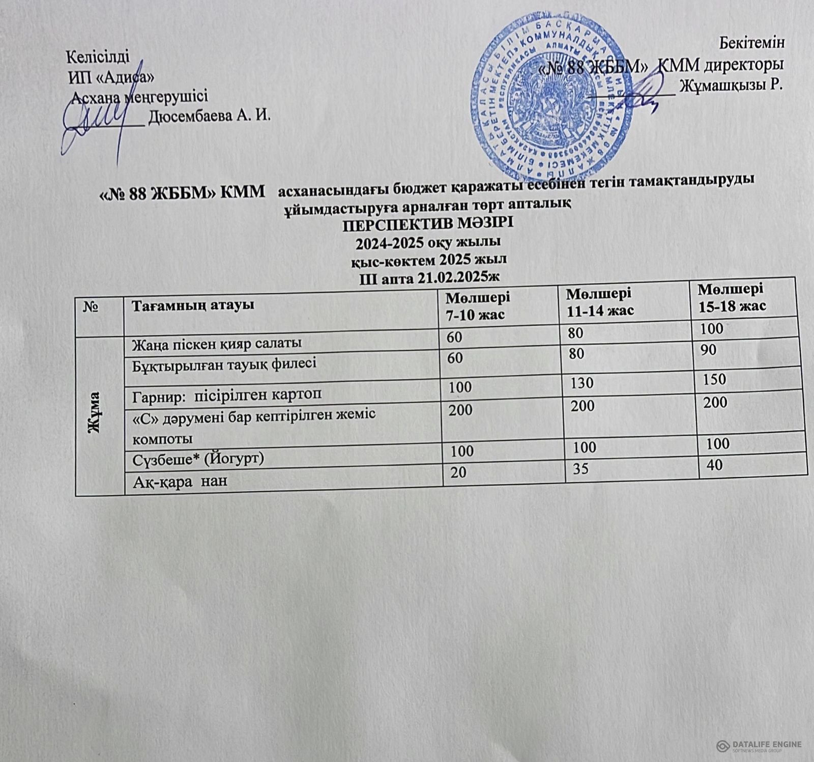 » 21.02.2025 ж. ас мәзірі (фотосуреті)